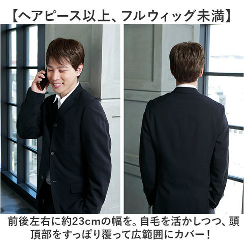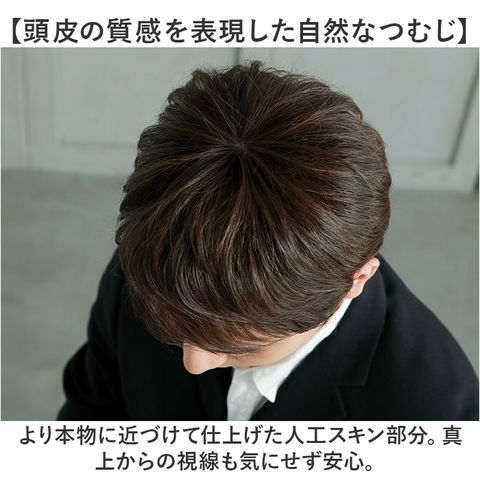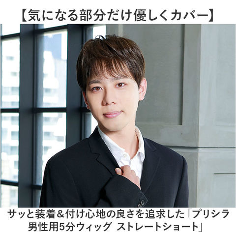 | 商品説明 | 【気になる部分だけ優しくカバー】サッと装着&付け心地の良さを追求した「プリシラ 男性用5分ウィッグ ストレートショート」【ヘアピース以上、フルウィッグ未満】前後左右に約23cmの幅を。自毛を活かしつつ、頭頂部をすっぽり覆って広範囲にカバー!【ナチュラルなストレートショート】ウィッグを頭に乗せ、4箇所のクリップで固定。馴染ませてセットすれば、すっきりヘア◎【医療用テープでの固定も可能】クリップの下にテープ台が縫い付けられた仕様。医療用テープを貼り、頭皮に直接貼り付けも。(※1)お手持ちの医療用テープを使用する際は、クリップを外してください。【付けていることを忘れる軽やかさ】オールウィッグに比べて圧倒的に軽いのが特徴。長時間の着用もストレスフリー。【境目が目立ちにくく不安を解消】襟足は長め。自毛とウィッグが重なる部分に段差ができないよう、細かいシャギーやレイヤーを。【ナチュラルな独自スタイリング】キャップが後頭部中央まであり、襟足に向けて下にカーブ。もみあげと襟足は自毛でリアル感を。【幅広い頭囲に対応してフィット】ウィッグのフチ全体が伸縮。頭のサイズに合わせてしっかりフィットできるつくり。【頭皮の質感を表現した自然なつむじ】より本物に近づけて仕上げた人工スキン部分。真上からの視線も気にせず安心。【熱がこもりにくいハーフメッシュ】ウィッグ内側は、ハーフ&メッシュ仕様。通気性が良く、いや~なムレも軽減。【締め付けがなく負担をかけない】髪の毛に優しいクリップ、医療用テープの使用など、きつく固定される感覚がなく快適。【人毛のような自然な質感と手触り】独自配合の国内メーカー製耐熱ファイバー100%。ツヤを軽減、くし通りも良く自毛に馴染む!(※2)凹凸加工を施した新ファイバーと、従来の耐熱ファイバーをミックスしています。【ヘアアイロンなどの使用も自由に】耐熱性があるので、コテやヘアアイロンの使用も可能。(※3)耐熱温度は180度、適正温度は130~150度です。 |