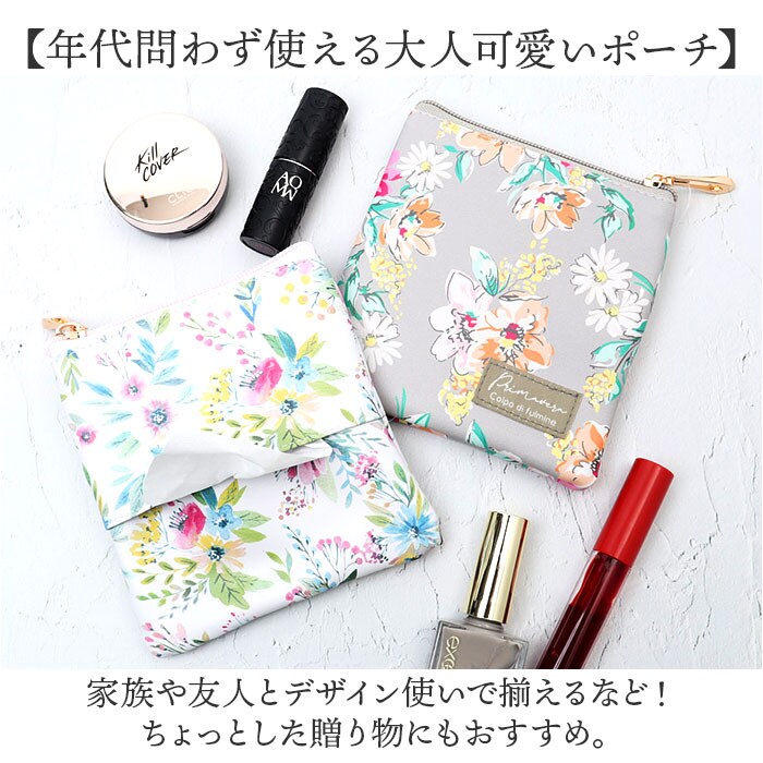 | 商品説明 | 【お出かけに役立つマストアイテム】ポケットティッシュと小物をひとまとめ。「プリマベーラ ティッシュポーチ」が新登場。【フラワー柄でテンションもアップ】使うたびに気持ちが華やぐ、フラワープリントデザイン。バッグの中でも見つけやすい!【ティッシュをサッと取り出せて便利】背面ポケットに取り出し口付き。ティッシュを使いたい時に、すぐ取り出せるつくり。【小物ポーチとしても大活躍】ファスナー式の収納ルームには、リップや目薬、アクセサリーなどをIN。【年代問わず使える大人可愛いポーチ】家族や友人とデザイン使いで揃えるなど!ちょっとした贈り物にもおすすめ。 |