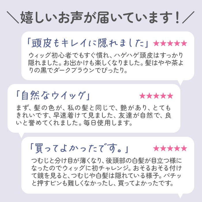| 商品説明 | 急なお出かけ前も簡単装着!つむじをピンポイントに隠す「白髪かくしウィッグ つむじタイプ」が新登場。【困った時の味方】毛染めまで待てない!そんなときに便利なウィッグ。頭頂部に乗せてクリップで固定するだけで、つむじをピンポイントに隠せちゃう!【軽やかな質感】量感調整することで、ウィッグ特有の重さが軽減。自毛との馴染みやすさがアップ。【自然なつむじ】人工スキン部分は、より本物に近い頭皮の質感を表現!【国内メーカー製耐熱ファイバー100%】従来のファイバーに、ツヤを軽減した自毛のような細さの新ファイバーを配合。ウィッグに見えない自然なスタイルに!コテやヘアアイロンの使用もOK。(※耐熱温度は180度、適正温度は130~150度です。)【お手入れラクラク】絡みや汚れが気になったら手洗いできるから、いつも清潔。【選べるカラー】自毛に合わせて選べるカラーバリエーション。カールにもストレートにも馴染む仕上がり。 |