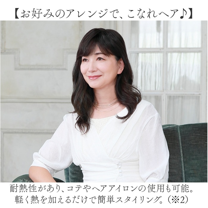 | 商品説明 | 【気になる分け目を手軽にカバー】部分的に隠せるカバーピース。「プリシラ白髪かくしウィッグ 人毛100% 分け目タイプ」。【地毛に馴染むナチュラルな仕上がり】人毛100%だからこその、太さや艶感、色味。地毛に溶け込むような自然な見た目が特徴。(※1)人毛特有のクセがついている場合があるため、パッケージから出したらクセを直して使用してください。【敏感肌の方も安心の肌触り】しなやかで手触りも抜群。お肌が敏感な方も、安心して着用可能。【頭皮の質感を表現した自然なつむじ】より本物に近づけて仕上げた人工スキン部分。真上からの視線も気にせず安心。【2つのクリップでしっかり固定】前側・後ろ側に頭皮に優しいクリップを。締め付けることなく地毛に固定、風が吹いても大丈夫。(※2)クリップは、前側:黒、後ろ側:茶色で色分けされています。【お好みのアレンジで、こなれヘア♪】耐熱性があり、コテやヘアアイロンの使用も可能。軽く熱を加えるだけで簡単スタイリング。(※2)耐熱温度は180度、適正温度は130~150度です。【日本人の肌と髪色に合わせたカラー】日本人に馴染みやすい、こだわりのカラーをラインナップ。耳にかけてもOK。【自宅でお手入れできて衛生的】絡みや汚れが気になったら手洗いできるから、いつも清潔をキープ。(※3)ウィッグを洗うとカールはとれますが、耐熱のため巻き直すことでカールが付きます。 |