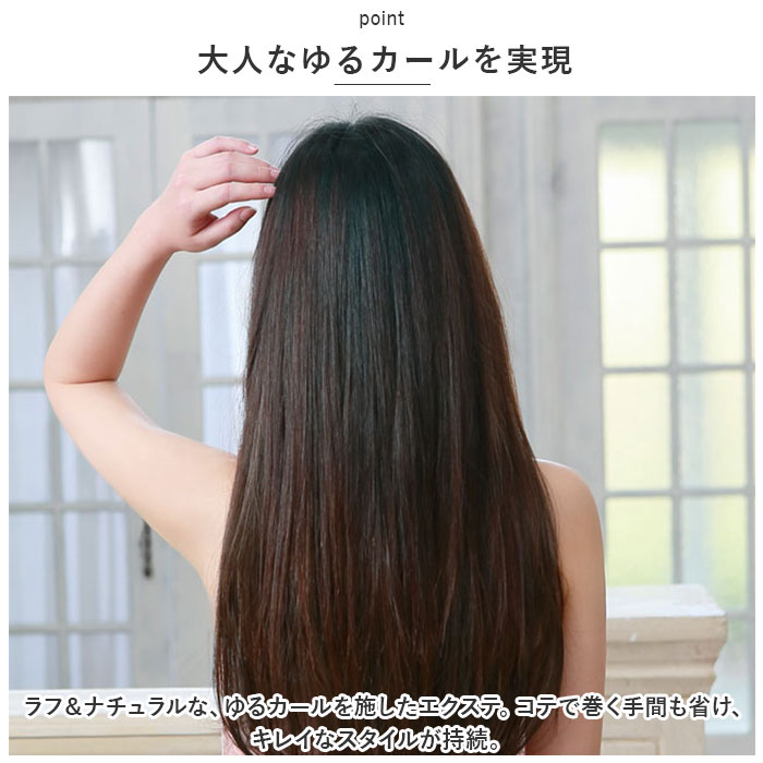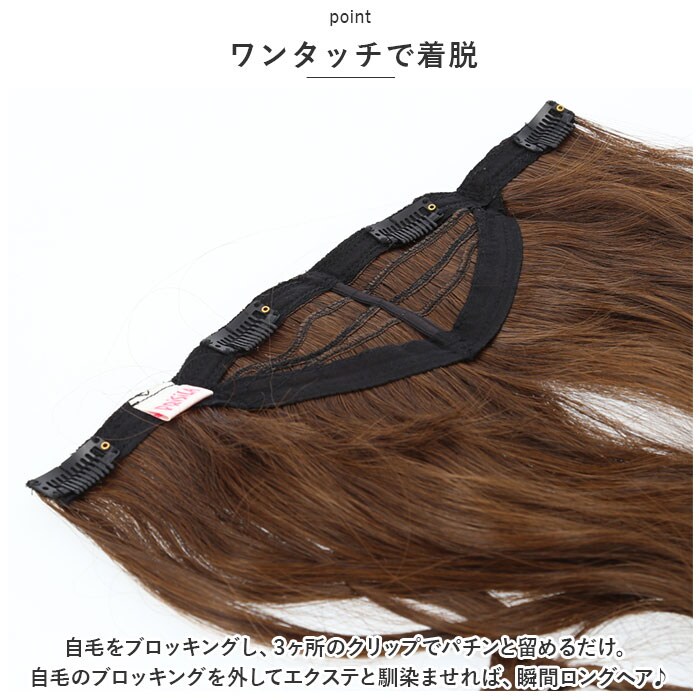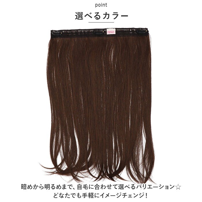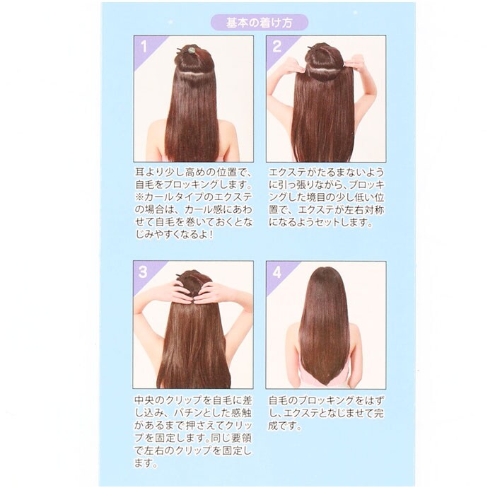 | 商品説明 | セルフで着脱簡単!憧れのロングヘアに変身できる「めちゃ楽エクステ ヴァージンストレート」が新登場。【ワンタッチで着脱】自毛をブロッキングし、3ヶ所のクリップでパチンと留めるだけ。自毛のブロッキングを外してエクステと馴染ませれば、瞬間ロングヘア♪【ナチュラルなニュアンスストレートヘア】毛先をワンカールさせた、大人っぽいストレートヘアに。程よいボリューム感に仕上げた、使い勝手抜群のアイテム。【国内メーカー製耐熱ファイバー100%】従来のファイバーに、ツヤを軽減した人毛のような細さの新ファイバーを配合。エクステに見えない自然なスタイルに!コテやヘアアイロンの使用もOK。(※耐熱温度は180度、適正温度は130~150度です。)【お手入れラクラク】絡みや汚れが気になったら手洗いできるから、いつも清潔。着用ポイントやお手入れ方法が書かれた説明書付き。【選べるカラー】暗めから明るめまで、自毛に合わせて選べるバリエーション☆どなたでも手軽にイメージチェンジ! |
