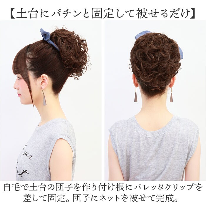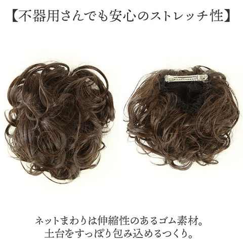 | 商品説明 | 【一瞬で手軽にスタイルチェンジ】バレッタでワンタッチ!ボリュームをプラスする「プリシラ バレッタウィッグ」。【土台にパチンと固定して被せるだけ】自毛で土台の団子を作り付け根にバレッタクリップを差して固定。団子にネットを被せて完成。【不器用さんでも安心のストレッチ性】ネットまわりは伸縮性のあるゴム素材。土台をすっぽり包み込めるつくり。【挑戦しやすいシンプルカール】高めのお団子や、低い位置でのまとめ髪に。ややエッジの効いたカールはミセスにもぴったり。【人毛のような自然な仕上がりを実現】国内メーカー製耐熱ファイバー100%。凹凸加工を施し、ツヤを軽減。【ヘアアイロンなどの使用も自由に】耐熱性があるので、コテやヘアアイロンの使用も可能。(※)耐熱温度は180度、適正温度は130~150度です。 |