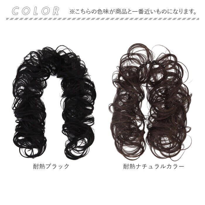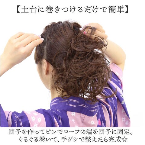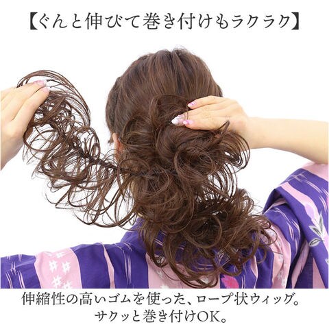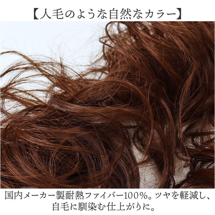 | 商品説明 | 【カールヘアで無限にアレンジ♪】簡単に使えるポイントウィッグ!「プリシラ ロープウィッグ ラウンドカール」。【土台に巻きつけるだけで簡単】団子を作ってピンでロープの端を団子に固定。ぐるぐる巻いて、手グシで整えたら完成☆【ぐんと伸びて巻き付けもラクラク】伸縮性の高いゴムを使った、ロープ状ウィッグ。サクッと巻き付けOK。【使い勝手抜群な定番カール】デイリーにもお呼ばれスタイルにも!大きめのラウンドカールで、程よい華やかさをプラス。【洋装も和装も!色んなスタイルに】団子を好きな位置に作って、フェミニンなサイド盛り。上品なサイドダウンヘアなども自在♪【人毛のような自然なカラー】国内メーカー製耐熱ファイバー100%。ツヤを軽減し、自毛に馴染む仕上がりに。【ヘアアイロンなどの使用も自由に】耐熱性があるので、コテやヘアアイロンの使用も可能。(※)耐熱温度は180度、適正温度は130~150度です。【自宅でお手入れできて衛生的】絡みや汚れが気になったら手洗いできるから、いつも清潔をキープ。【ウィッグ初心者さんでも安心】どなたでも手軽にイメージチェンジ!着用ポイントやお手入れ方法が書かれた説明書付き。 |