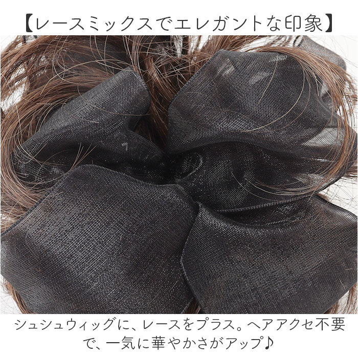プリシラ レース付きシュシュウィッグ VS-01【耐熱ダークブラウン】