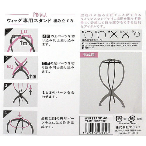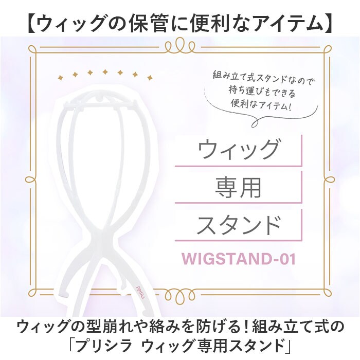 | 商品説明 | 【ウィッグの保管に便利なアイテム】ウィッグの型崩れや絡みを防げる!組み立て式の「プリシラ ウィッグ専用スタンド」。【工具不要でカンタン組み立て】・5つのパーツを切り込み同士差し込み、合わせてはめ込むだけ。どなたでもサッと組み立て。(※)ペッケージにイラスト付きで組み立て方が記載されております。【軽量で省スペース、持ち運びもOK】片手で手に取れる軽量設計。場所を取らずに置いておけて、分解すれば持ち運びも可能◎【空間に溶け込むシンプルデザイン】存在感を出さないホワイトカラー。プリシラオリジナルのロゴマーク入り♪ |