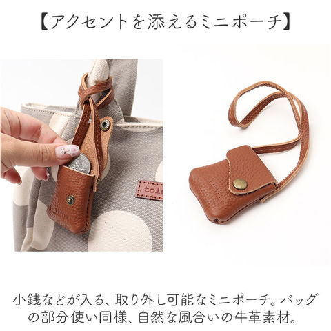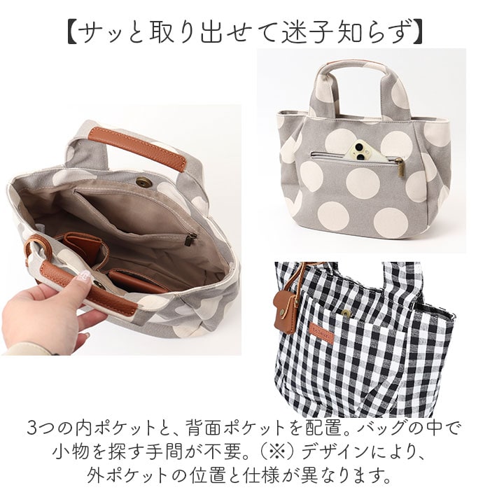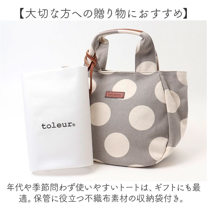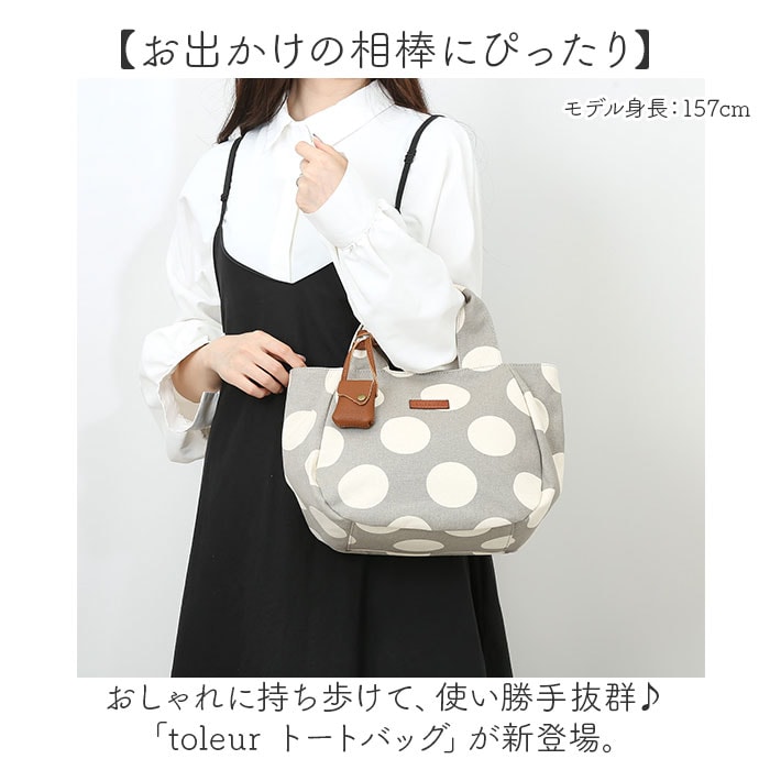 | 商品説明 | 【お出かけの相棒にぴったり】おしゃれに持ち歩けて、使い勝手抜群♪「toleur トートバッグ」が新登場。【キレイめカジュアルスタイルに♪】存在感のある大きめのドットや、ギンガムチェック柄。ハンドル等には牛革素材をプラス。【サッと持ち出せて使い心地軽やか】お出かけに必要な小物がすっきり。手に取りやすく、体に負担をかけない軽量設計。【マグネットボタンでワンタッチ開閉】力いらずで簡単◎ガバっと開いて出し入れしやすく、閉じれば中身のこぼれ落ちもガード。【マストアイテムがひとまとめ】A5サイズや500mlのペットボトルが横向きに。コンパクトながら程よい収納力◎【サッと取り出せて迷子知らず】・3つの内ポケットと、1つの外ポケットを配置。バッグの中で小物を探す手間が不要。(※)デザインにより、外ポケットの位置と仕様が異なります。【アクセントを添えるミニポーチ】小銭などが入る、取り外し可能なミニポーチ。バッグの部分使い同様、自然な風合いの牛革素材。【大切な方への贈り物におすすめ】年代や季節問わず使いやすいトートは、ギフトにも最適。保管に役立つ不織布素材の収納袋付き。【toleur-トーラ-】沢山の人にレザーを使ったバッグを持ってもらいたいという願いを込めたブランド。【ポケット仕様】内側:ファスナーポケット×1、オープンポケット×2前面:マグネットポケット×1(ギンガム)背面:ファスナーポケット×1(ドット) |