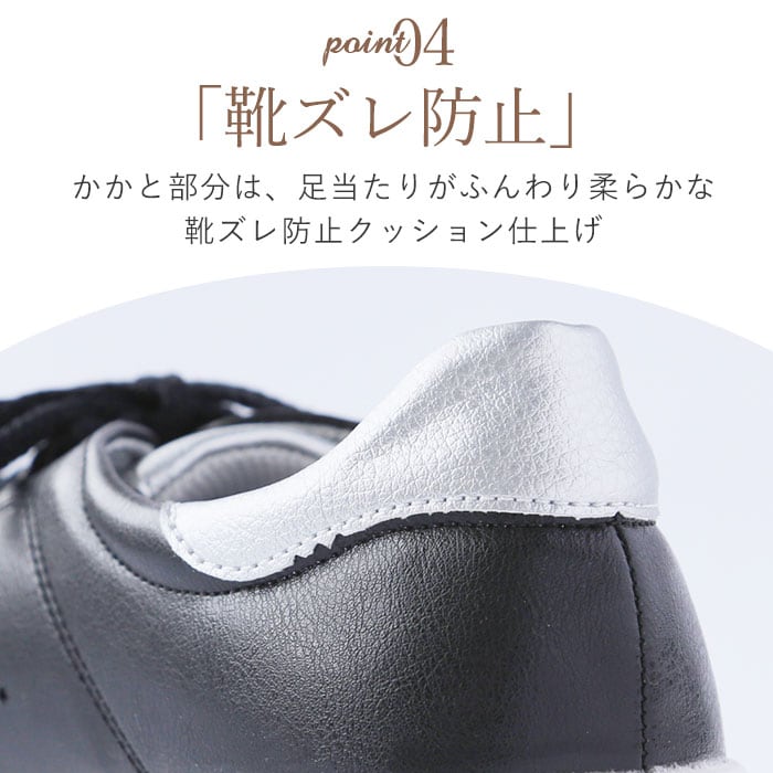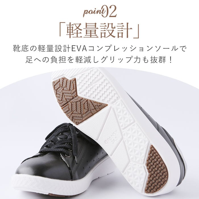 | 商品説明 | 弾むような履き心地で大人気♪「Pansy」の3Eレディーススニーカー「PS1391」。履き口に近い部分の靴紐通しに伸縮ゴム素材を使用し、脱ぎ履きスムーズ。足裏にフィットするインソールのU字型アーチクッションが、歩行中の衝撃を緩和。インソール中敷きはサラッと清潔!抗菌・防臭加工済み。かかと部分は、足当たりがふんわり柔らかな靴擦れ防止クッション仕上げ。靴底には軽量設計EVAコンプレッションソールを採用。足への負担を軽減し、グリップ力も抜群。個性的なアッパーの色合いと爽やかなホワイトソールのカラーコンビがお洒落。小さく散りばめた星型のダイカットがワンポイント。スイスイ前へと足が進み、毎日のウォーキングがもっと楽しく♪ |