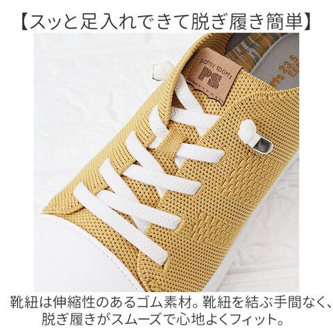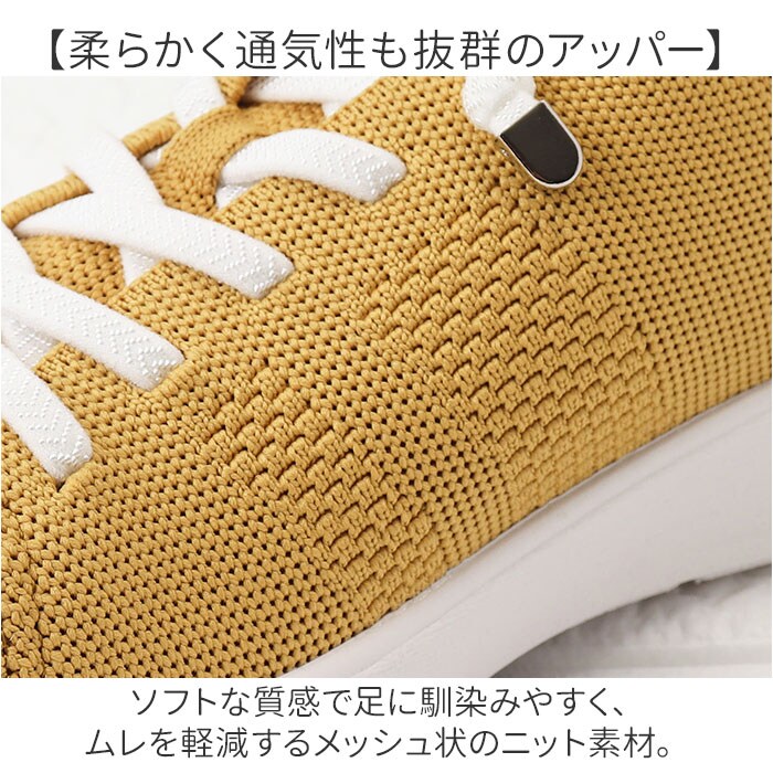 | 商品説明 | 【毎日履きたくなるスニーカー】フレキシブルでスイスイ歩ける♪履き心地が優しく、ヘビロテ確定☆「Pansy スニーカー」【柔らかく通気性も抜群のアッパー】ソフトな質感で足に馴染みやすく、ムレを軽減するメッシュ状のニット素材。【つま先部分は補強されていて安心】つま先周辺部分には、内側から柔らかな補強材をプラス。足先を優しくガード。【スッと足入れできて脱ぎ履き簡単】靴紐は伸縮性のあるゴム素材。靴紐を結ぶ手間なく、脱ぎ履きがスムーズで心地よくフィット。【優しく包み込んで衝撃から守る】U字型アーチクッションが踵と土踏まずに馴染み、足裏にかかる衝撃を緩和。程よいふんわり感◎【ふわっと軽快でストレスフリー】足に負担のかかりにくい軽やかさ。アクティブに動けて、長時間の移動も安心。【効果が持続する抗菌防臭加工】インソールは安全かつ長時間効果のある抗菌防臭加工済み。いつも清潔なまま履けるのが嬉しい!【軽量性と防滑性を両立したソール】軽量設計のEVAコンプレッションソール。接地面にはグリップ力に優れたゴム素材をプラス。【お気に入りを選べるカラー】ベーシックや、足元を彩るカラーをラインナップ。カラフルなインソールもポイント。 |