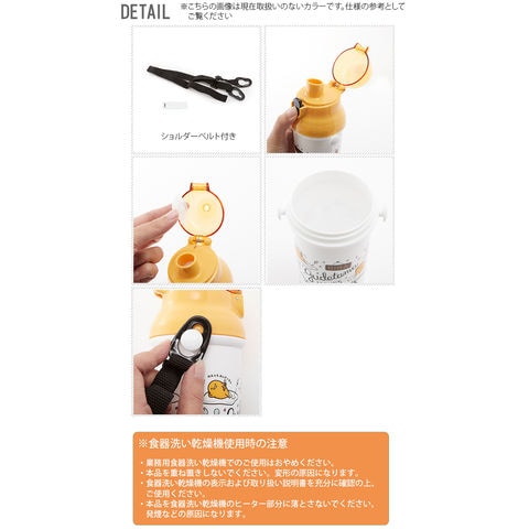 | 素材 | 本体、フタ、ベルト止め:ポリプロピレン キャップ:AS樹脂 パッキン:シリコン樹脂 バネ、ピン:ステンレス |
