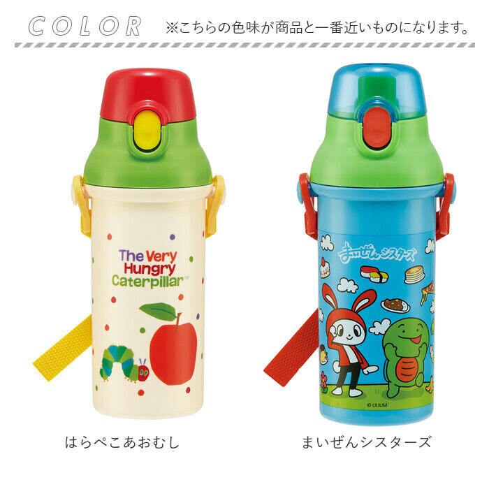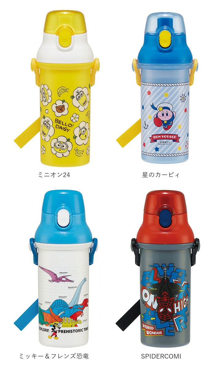 | 商品説明 | 大人気の抗菌直飲みワンタッチボトルに新しいキャラクターが仲間入り♪安心の日本製!プラスチック製で軽くて持ちやすい形状なので、小さなお子さまにオススメ。ワンプッシュ式オープンでお子さまも開閉がラクラク♪氷が入れやすい広口タイプで、洗い物が楽ちん。食洗機対応なのも、嬉しいポイント★お名前シール付きだから、お友達とお揃いでも大丈夫◎肩にかけて持ち運べるショルダーベルト付き。 |
