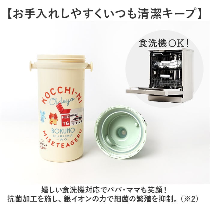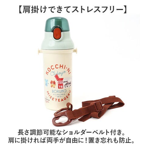 | 商品説明 | 【毎日のお出かけの相棒にぴったり】デイリーに使いやすい機能性◎キャラクターデザインの「ワンタッチボトル」480ml。【ワンプッシュで簡単オープン】キャップは片手でサクッと開けられるつくり。お子さま1人でも、スムーズに対応可能。【ペットボトルのように直飲みOK】キャップを開けてゴクゴク飲める、ダイレクト設計。口部分は程よい太さで、快適な飲み心地◎(※1)飲む時にフタが鼻に当たらないよう、キャップを倒して固定できます。【色んなシーンで使える万能サイズ】スリムながら程よく入る、容量480mlサイズ。通園・通学、レジャーなどにもぴったり。【ドリンク準備もお手入れもスムーズ】本体はドリンクを注ぎやすい広口設計。大きめの氷もすっぽり、底までしっかり洗浄。【軽量で丈夫!持ち運びラクラク】落としても割れにくく安全。軽やかかつ持ちやすい形状で、小さな体に負担をかけにくい◎【肩掛けできてストレスフリー】長さ調節可能なショルダーベルト付き。肩に掛ければ両手が自由に!置き忘れも防止。【お手入れしやすくいつも清潔キープ】嬉しい食洗機対応でパパ・ママも笑顔!抗菌加工を施し、銀イオンの力で細菌の繁殖を抑制。(※2)全ての細菌の増殖を抑制するものではありません。【お友だちとお揃いでも大丈夫】お名前シールが付属。取り間違いを防ぎ、保育園や学校での使用も安心。【大人気のキャラクターが大集合☆】お気に入りを見つけて、一緒にお出かけ!お友達へのプレゼントにもおすすめの日本製。 |