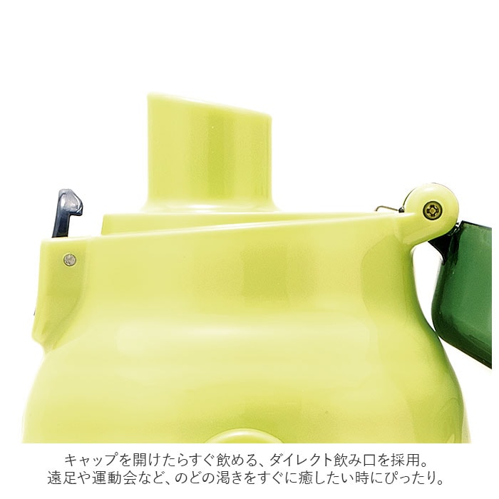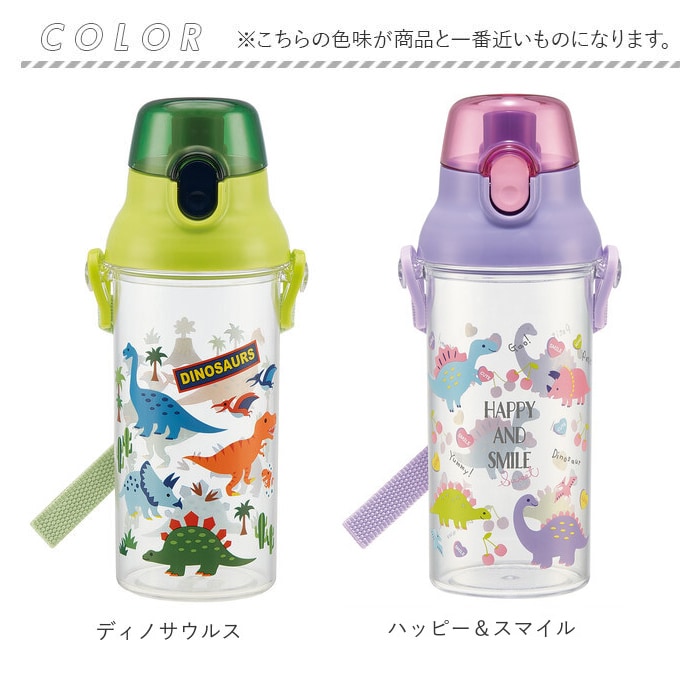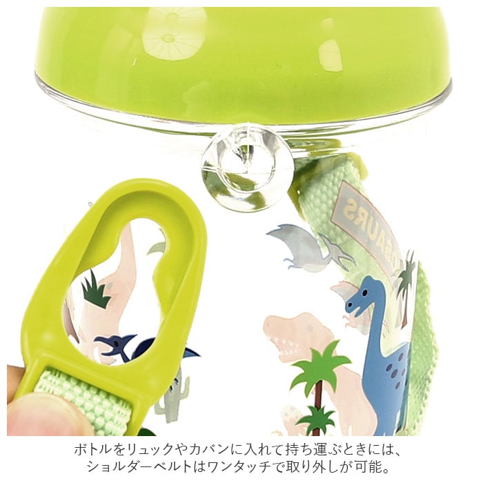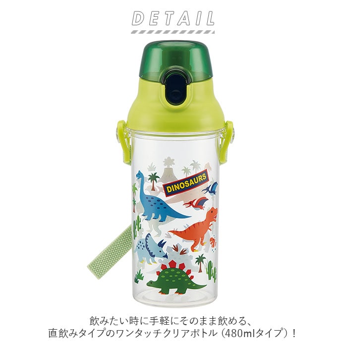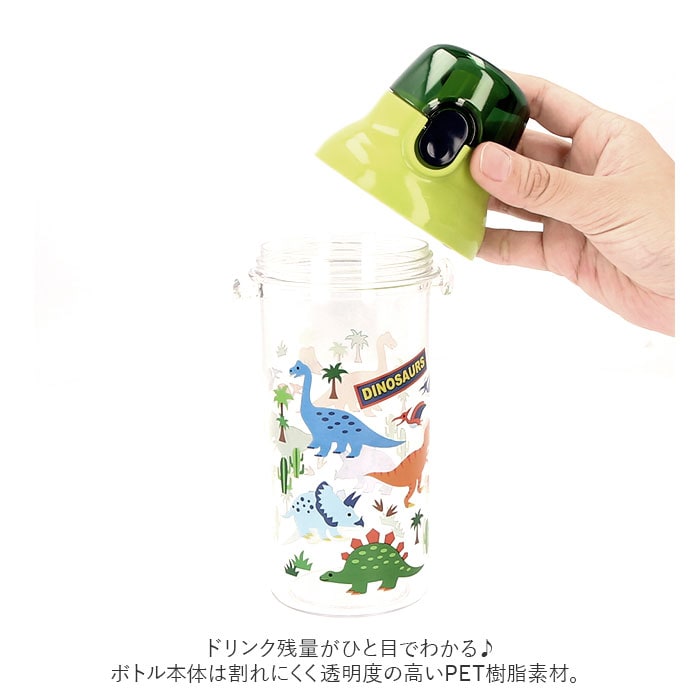 | 商品説明 | 食洗機でお手入れ簡単!飲みたい時に手軽にそのまま飲める、直飲みタイプのワンタッチクリアボトル(480mlタイプ)!キャップを開けたらすぐ飲める、ダイレクト飲み口を採用。遠足や運動会など、のどの渇きをすぐに癒したい時にぴったり。キャップはプッシュ式で簡単オープン!ゴクゴク飲むときにキャップが顔に当たらない、キャップロック機能付き。ボトル開口部が広口になったワイド設計で、飲み物に氷が入れやすく、毎朝のドリンクの準備がより手軽に。ドリンク残量がひと目でわかる♪ボトル本体は割れにくく透明度の高いPET樹脂素材。忙しいママさんに嬉しい、食器洗い乾燥機対応なので、お手入れが楽ちん。調節のできるショルダーベルトで肩掛けにすれば、両手が空いて遠足やピクニックだってもっと楽しめる!活発なお子さまにピッタリ。ボトルをリュックやカバンに入れて持ち運ぶときには、ショルダーベルトはワンタッチで取り外しが可能。お友だちのボトルとの取り違えを防ぐ、お名前シール付き。カラフルな恐竜たちのデザインが可愛らしい、毎日のお出掛けが楽しくなるカラーバリエーション。 |