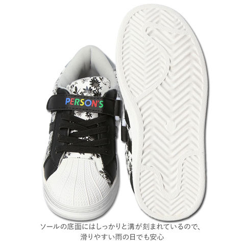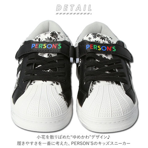 | 商品説明 | 小花を散りばめた“ゆめかわ”デザイン♪履きやすさを一番に考えた、PERSON’Sのキッズスニーカー。PERSON’Sのロゴが入った面ファスナーベルトで脱ぎ履きが楽ちん。さらに、伸縮ゴムタイプの靴ひもで、甲幅もピッタリサイズに簡単調節。裸足のように軽やかに走れる、片足約180gの軽量設計。(※16.0cmサイズ、片足分の重量です。)アッパーは、個性的な花柄の生地にフェイクレザーのラインを組み合わせ、スポーティなデザインに繊細な女の子らしさをプラス!付属の中敷きインソールは取り外しができ、こまめに水洗いが可能。いつも清潔で快適な履き心地。屈曲性に優れたアウトソールが、足の動きにフィット!さらに、履き口は厚みのあるクッションで仕上げて、靴擦れの痛みからキッズの足をガード。ソールの底面にはしっかりと溝が刻まれているので、滑りやすい雨の日でも安心。かかと部分には、自動車のライトにキラリと光るリフレクター素材を配置し、薄暗い時間も安全にお出掛け。PERSON’Sは「明るく、元気に、健康的に」のコンセプトのもと、1976年に渋谷の公園通りでスタートした老舗ブランド。ポップなカラーや楽し気なイラストをデザインに取り入れ、創設時と現代のトレンドをミックスさせたカジュアルラインを展開。 |