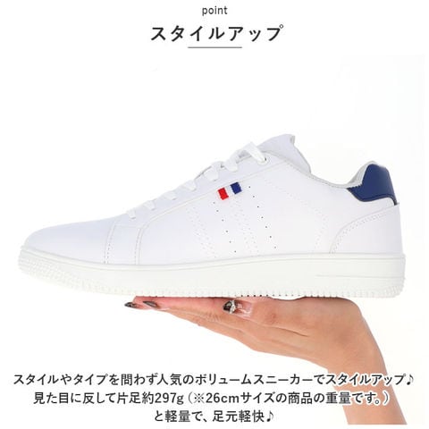 | 商品説明 | このボリュームでこの軽さ!通勤通学から作業靴にもオシャレに履けるPERSONS メンズスニーカー。【スタイルアップ】スタイルやタイプを問わず人気のボリュームスニーカーでスタイルアップ♪見た目に反して片足約297g(※26cmサイズの商品の重量です。)と軽量で、足元軽快♪【シンプルなデザイン】シンプルなシルエットで足元がスッキリとまとまる。お洋服を選ばないので、デイリーユースにはもちろん、スポーツや作業靴としても活躍。【履きやすさが自慢】柔らかく、程よい弾力があるアウトソールと低反発インソールが衝撃を吸収◎屈曲性にも優れているから、長時間履いても疲れにくいのが嬉しい!【快適な履き心地】くるぶしやかかとに当たる履き口部分の生地にはふんわりと厚みをもたせ、歩行時だけでなくスポーツ時でも快適な履き心地。【滑りにくい】アウトソールには滑り止加工されているので、雨に濡れた地面やツルツルとした床でも滑りにくい安心仕様。【お揃いコーデ】同シリーズでレディースタイプもあるので、カップルや仲間とお揃いコーデも◎ |