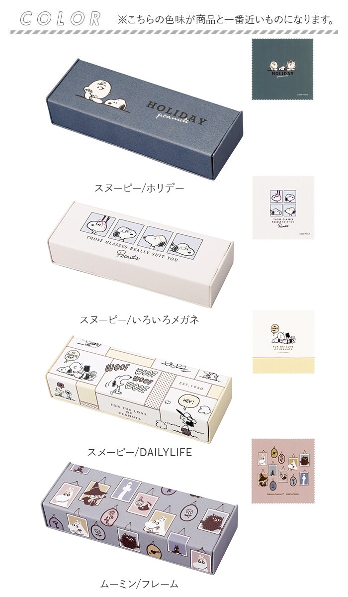 | 商品説明 | スマートに持ち運べて、枕元にも可愛らしく飾れる♪ほのぼのキャラクターの絵柄がアクセントになった「スタンド型メガネケース」【ケース&スタンドの2WAY仕様】背面側のフタを2つに折り返すと、ケースがしっかりと自立するメガネスタンドに変身!オフィスやダイニングテーブル、ベッドサイドでメガネをオシャレに収納♪【しっかり保護するハードタイプ】丈夫なメタル素材のフレームに、上質なカラーフェイクレザーを貼り合わせたポップな仕上がり。凹みにくいハードタイプのケースだから、大切なメガネの持ち運びに最適。【内側は滑らか起毛素材】ケースの内側は、起毛加工を施した滑らかなレーヨン100%素材で仕上げ、メガネを衝撃やキズから守って優しく保管。内側のキャラクタープリントがアクセント♪【同じ柄のメガネクロス付き】ケース表面の可愛らしいキャラクターの絵柄と同じ、マイクロファイバー生地(ポリエステル100%)のメガネクロスが付属。【世界中で愛されるデザイン】メガネケースをカバンから取り出すたび、誰もがほっこり笑顔になる♪世界中の人々から愛される「PEANUTS」など、お馴染みのキャラクターのデザインがとってもキュート♪ |