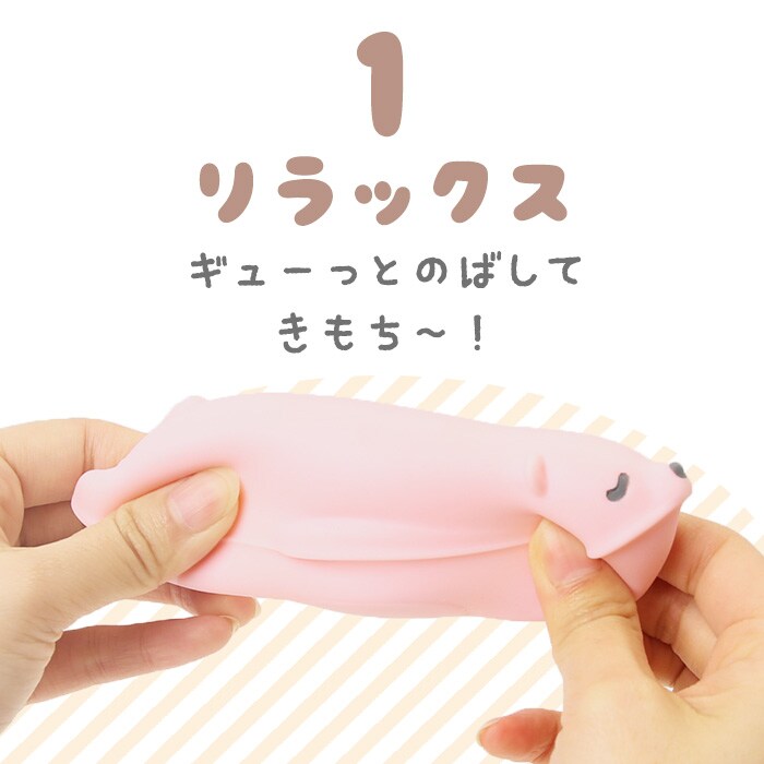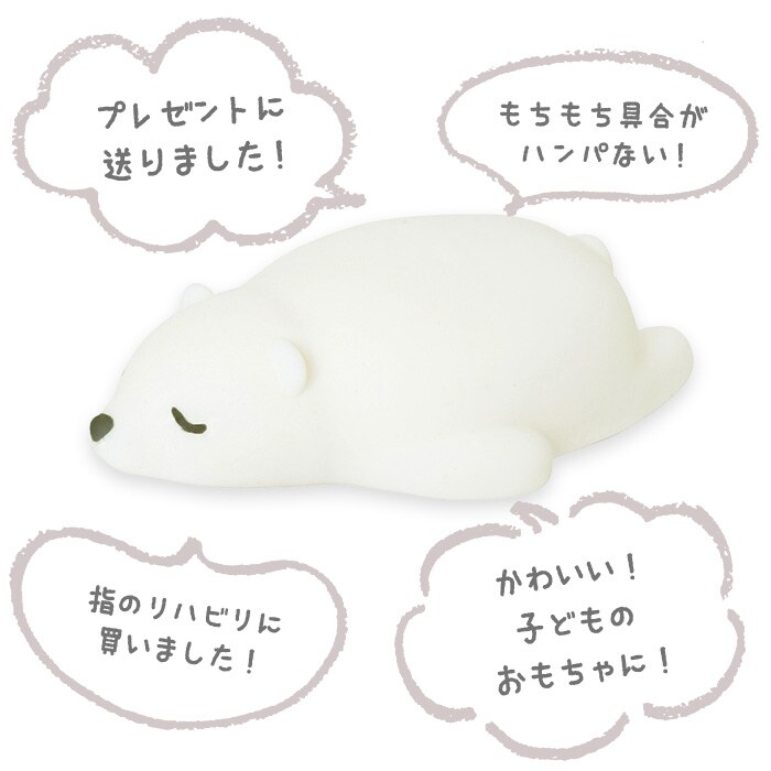 | 商品説明 | まるでマシュマロのようなぷにふわ感がクセになる♪「ミニぷにくま」が新登場。寝ている姿が愛らしく、丸みのあるフォルムに癒やされちゃう♪手のひらサイズのアニマル達をにぎにぎしたり、ギューっと伸ばしてストレス発散にも♪テレワークなど、長時間のマウス使用のお供にぴったり。リストレストやスマホスタンドとしても活躍◎(※スマホやスマホケースの形状によっては使用できない場合があります。) |