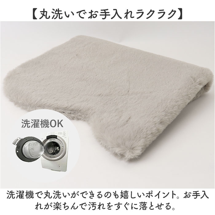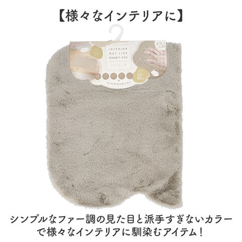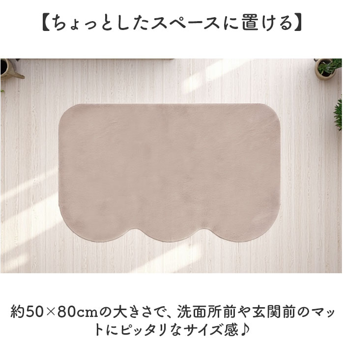 | 商品説明 | 【お部屋を可愛く華やかに】まるでウサギを撫でているよう♪サニタリールームや玄関前に最適なラビットファー調のマット【大人可愛い空間に】ふわふわした見た目が乙女心をくすぐる!くすみカラーで甘すぎないのも嬉しい。【ちょっとしたスペースに置ける】約50×80cmの大きさで、洗面所前や玄関前のマットにピッタリなサイズ感♪【ウサギのような触り心地】ふわふわサラサラとした触り心地が特徴的。ウサギを撫でているようなやみつきになる滑らかさ【丸洗いでお手入れラクラク】洗濯機で丸洗いができるのも嬉しいポイント。お手入れが楽ちんで汚れをすぐに落とせる。【滑りにくいゴム面付き】裏面は凹凸付きのゴム面になっており、フローリング床の上に敷いても滑りにくい。【様々なインテリアに】シンプルなファー調の見た目と派手すぎないカラーで様々なインテリアに馴染むアイテム! |