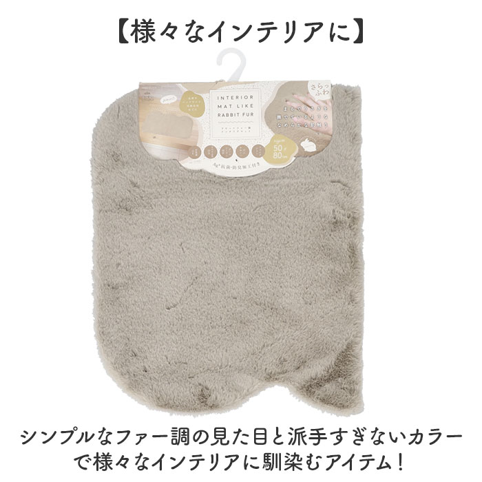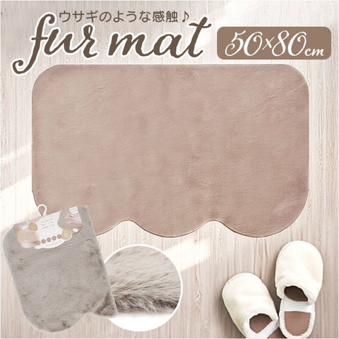 pupumof ラビットファー調インテリアマット 50x80【グレージュ】
