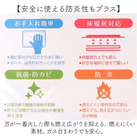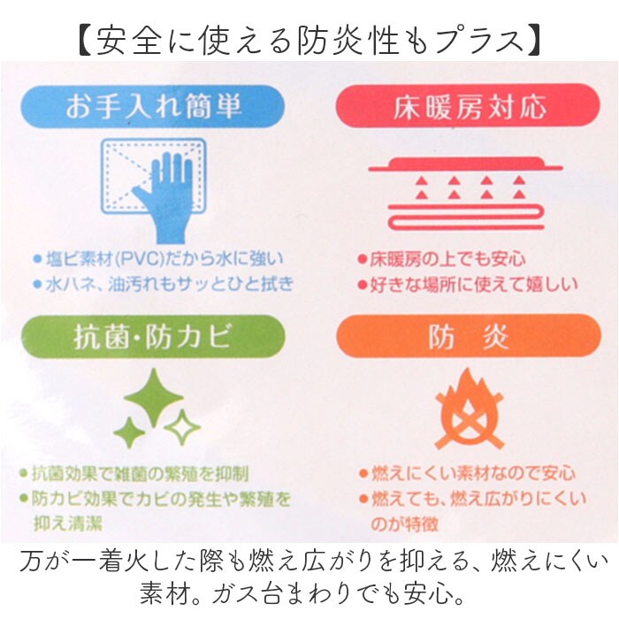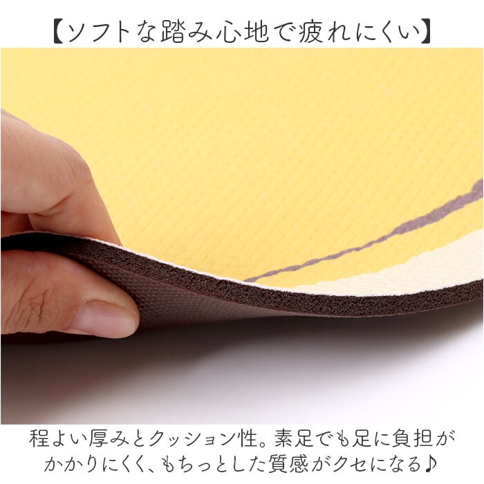 | 商品説明 | 【空間の可愛いワンポイントに】サッと敷くだけで明るい雰囲気に☆キャラクターデザインの「PVCフリースタイルマット」。【自宅の色んなシーンで活躍】洗面まわりや観葉植物の下、キッズルームなどに!軽やか&コンパクトなサイズ感。【サッと拭くだけ!お手入れ簡単】水に強いPVC素材を採用。水ハネや油汚れも、ひと拭きでキレイに!【ソフトな踏み心地で疲れにくい】程よい厚みとクッション性。素足でも足に負担がかかりにくく、もちっとした質感がクセになる♪【フローリングの傷つきをガード】小物が落下しても、衝撃を吸収。フローリングを傷や凹みから保護。【マットを清潔な状態でキープ】雑菌の繁殖を抑制する抗菌効果。カビの発生や繁殖を抑える防カビ効果も。【安全に使える防炎性もプラス】万が一着火した際も燃え広がりを抑える、燃えにくい素材。ガス台まわりでも安心。【床暖房対応でオールシーズン重宝】引っ越しの際の買い替えや、季節によっての使い分けも不要。【滑りにくい安心・安全設計】裏面も表面と同じPVC素材。エンボス加工を施しているから、滑りにくくズレを防止。【手軽に彩って暮らしをもっと豊かに】みんな大好きなキャラクター柄をラインナップ!お気に入りのアイテムを追加して楽しい日々を。 |