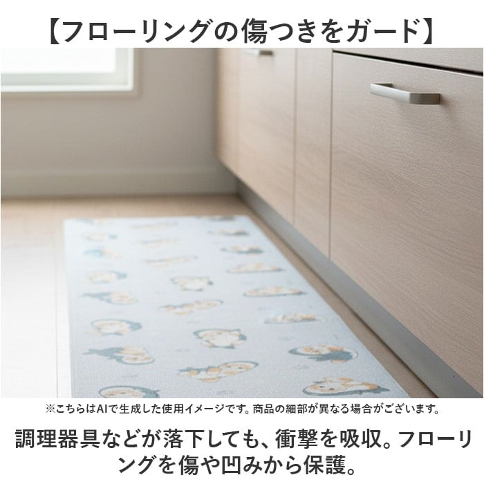 | 商品説明 | 【手軽に使えるおしゃれマット】キッチンを彩る可愛いキャラクターデザインの「PVC キッチンマット(約45×120cm)」。【お手入れ簡単】水や油汚れもふきんでサッとひと拭きでキレイが続く◎【ソフトな踏み心地】程よい厚みとクッション性。足に負担がかかりにくく、もちっとした質感がクセになる♪【フローリングの傷つきをガード】調理器具などが落下しても、衝撃を吸収。フローリングを傷や凹みから保護。【表面凹凸で滑りにくい】細かな凹凸加工を表面全体に施して水回りでも足元が滑りにくく安全で快適〇【裏面滑り止めで安心】すべりにくい加工でマットがズレにくく小さなお子様がいても安心して使える。【コンパクトで使いやすい】コンロ周りやシンク前を程よくカバーする約45×120cmのサイズ感。【キュートなデザイン】キャラクターたちがキッチンを明るい空間に☆気分も上がって家事も捗りそう! |