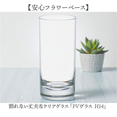 商品説明【安心フラワーベース】割れない丈夫なクリアグラス「PVグラス H14」。【割れない安心素材】ポリカーボネート製だから落としても割れない安全設計◎【熱湯も使える耐熱性】耐熱温度120度、耐冷温度マイナス20度で幅広く対応♪【傷に強く長持ち】耐久性が高い素材だから日常使いでも美しさ長続き〇【クリアで透明感抜群】ガラスのような透明度でお花や植物を美しく引き立てる!