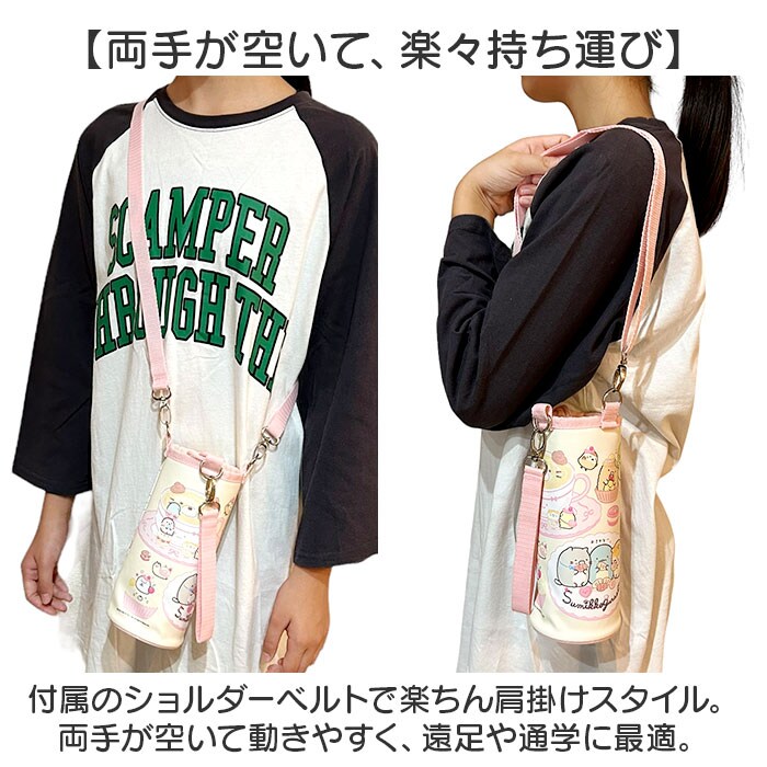 | 商品説明 | 【肩から掛けて、いつでも水分補給】遠足やランチ後のドリンクタイムは大好きなキャラクターと一緒に♪「キャラクター ボトルケース」【大切なマイボトルを優しく保護】ソフトなフェイクレザーの生地が、持ち運び中のボトルの表面をキズや衝撃から優しく保護。【保冷効果をいっそうキープ】内側を保冷効果のあるアルミ蒸着フィルムで仕上げ、ランチの時間までボトルの冷たさをキープ。【冷気を逃がさない巾着タイプ】口がキュッと絞れる巾着仕様!ペットボトルをケースに入れたままの状態でゴクゴク飲めちゃう♪【ステンレスボトルもIN!】500mlペットボトルがすっぽり収まるのはもちろん、ステンレスボトルやクリアボトルにも対応。【両手が空いて、楽々持ち運び】付属のショルダーベルトで楽ちん肩掛けスタイル。両手が空いて動きやすく、遠足や通学に最適。【バッグインする時にも便利】ショルダーを外せば、場所を取らずにバッグインもOK!サッと引き出せるストラップがポイント。【長く使えて、ぴったりフィット】ショルダーベルトは最長113cmまで伸長。お子さまの成長に合わせて自在に調節することが可能。【世界中で愛されるデザイン】ポケモンやSNOOPYなど、男の子も女の子も大好きなキャラクターが大集合!お気に入りを選んでね♪ |
