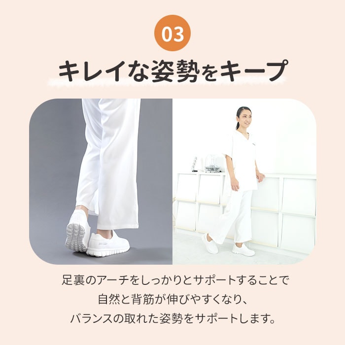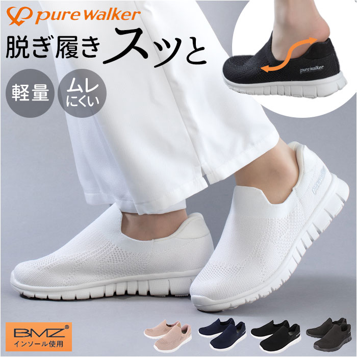 | 注意点 | 【医療や介護の現場に最適】滑り止めの凹凸が刻まれたアウトソールが、フラットなフロアーでもしっかりとグリップ。屈曲性抜群で動きやすく、看護師さんや介護士さん用のシューズにぴったり。【普段使いにもオススメ】カジュアルな服装にもすんなり馴染むシンプルで落ち着きのあるカラーバリエーション。かかとのPureWalkerのシルバーロゴが、控えめなワンポイント。※1.シューズ片足分の重量はわずか約180g。履いていることを忘れてしまうほどの軽い履き心地で、軽快なフットワークを実現。・・・(※23.5cmサイズの商品、付属のインソールの重量を含む、片足分の計測重量です。)※2.美しい脚のラインにエクササイズ。・・・(※脚痩せという点で、効果が期待できます。)※3.身体の緊張を緩和し、肩・腰の疲れが軽減。・・・(※肩・腰のコリ、緊張度の緩和に有用。)長時間日光にあたったり、摩擦、水漏れなどによる色落ちや色移りすることがあります。お取り扱いの際は、商品やパッケージなどに記載されている品質表示、アテンションタグ、ご使用上の注意事項などを必ずご確認下さい。本来の目的以外にはご使用にならないで下さい。カメラやモニターの性質により、画像と実物の色の違いがある場合がございますのでご理解願います。 |