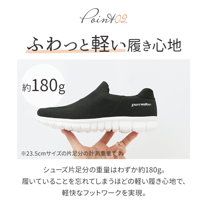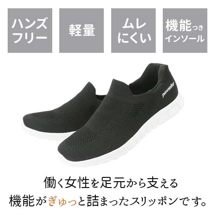 ピュアウォーカー ハンズフリーシューズ PW1502【ブラック】【23cm】