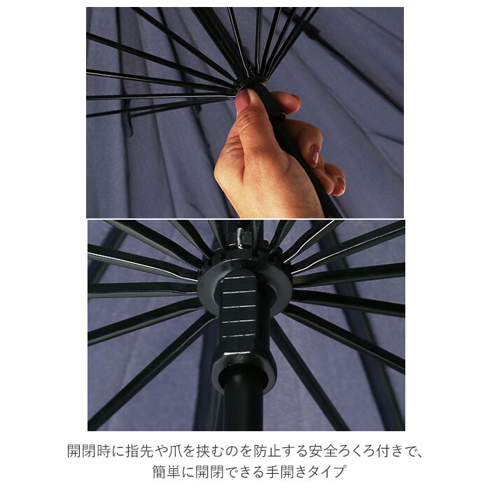 | 商品説明 | 普段使いにぴったりなシンプルデザイン♪PinkyWolman(ピンキーウォルマン)の丈夫な16本骨長傘が発売。(親骨55cmタイプ)親骨に弾力性があり、折れにくいグラスファイバー素材を使用した16本骨仕様。風が少し強めの日でもちゃんとさせて安心。開閉時に指先や爪を挟むのを防止する安全ろくろ付きで、簡単に開閉できる手開きタイプ。傘生地を留めるバンドは、パチンっと留めやすいスナップボタン式。傘生地はシンプルなワンカラー。ハンドルや石突き部分を、落ち着きのあるシックなカラーで組み合わせたユニセックス仕様◎ |