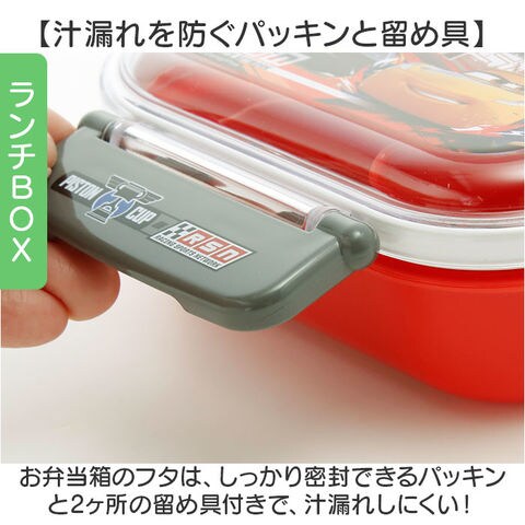 | 素材 | 【弁当箱】 [フタ]AS樹脂 [本体・中子・仕切]ポリプロピレン [止具]ABS樹脂 [パッキン]シリコーンゴム 【カトラリー】 [フタ、ハシ]AS樹脂 [本体]ポリプロピレン [スプーン、フォーク]ステンレス鋼(持ち手:ABS樹脂) 【コップ】ポリプロピレン |