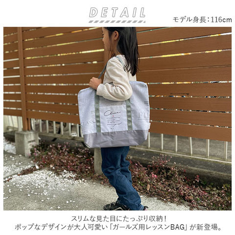 | 商品説明 | スリムな見た目にたっぷり収納!ポップなデザインが大人可愛い「ガールズ用レッスンBAG」が新登場。A4サイズの教科書やドリル、お着換えやシューズバッグもすっぽりと入る大容量。慌ただしい毎日の登下校時も安心!開口部は小物がこぼれ落ちる心配のない天ファスナータイプ。バッグ内側に吊りポケットには、筆記用具やメモ帳等ちょっとした小物がしまえて便利。吊りポケット正面にお名前が記入できるネームラベル付きなので、お友だちとお揃いのバッグでも大丈夫♪バッグの生地には薄手で軽いポリエステル素材を使用。汚れが付きにくく、長く使えるのも嬉しいポイント!ニュアンスカラーの優しい色合いに、アニマルやチェック柄を可愛らしく散りばめた、オシャレキッズ大満足のデザイン。(※ダイアリー・クローゼットモードのみ、フロントポケットが付いたデザインです。)荷物が多くなる新学期の登校や通園に大活躍!習いごと用のバッグにもオススメ。 |