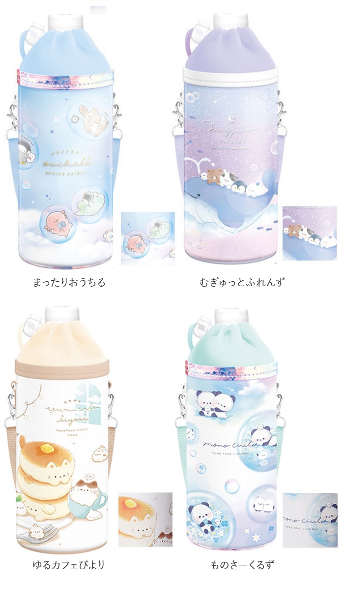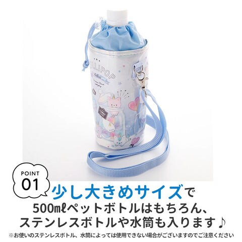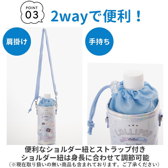 商品説明ショルダーベルト付きで持ち運びに便利!男の子にも女の子にも人気の可愛い絵柄を揃えたペットボトルホルダー。表面の生地には、光沢のあるエナメル加工素材(PVC樹脂)や、スタイリッシュな合成皮革を使用。汚れが付いたときもサッと拭き取るだけでお手入れ簡単。(※カラーにより表面の生地の種類、表面加工の方法が異なりますので、ご注意ください。)ボトルホルダー内側には保冷保温効果のあるアルミ蒸着シート生地を採用。ランチの時間まで飲み物の冷たさ温かさが持続。ボトルケースの開閉口はドローコードでキュッと絞れる巾着タイプ!ペットボトルをカバーに入れたままの状態で飲むことができて便利♪付属のショルダーベルトで肩掛けにもできる!遠足で水筒代わりにペットボトルを持参する時も、肩掛けにすれば両手が空いて活動しやすい。ショルダーベルトは最長125cmまで伸長し、お子さまの成長に合わせて調節できる!リュックやカバンに入れて持ち運ぶときは取り外しも可能。