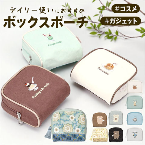 | 商品説明 | 【小物をまとめてバッグの中すっきり】細々したアイテムをIN♪持ち歩きに便利な「ボックスポーチ」が新登場。【デイリー使いにぴったりサイズ】小さすぎず大きすぎない!使い勝手の良いスクエアフォルム。サッと持ち出せるのが嬉しい♪【ラウンド型に大きくオープン】サイドまでガバっと開いて、出し入れスムーズ。ファスナーを閉じれば、こぼれ落ちをガード。【マルチに使える万能アイテム】コスメを入れたり、イヤホンやモバイルバッテリーをIN。底マチ付きで程よい収納力◎【サクッと取り出せるポケット】細かいものが迷子になりにくい、内ポケット付き。絆創膏や常備薬を収納。【心ほっこりアニマルモチーフ】素材やデザインの異なるバリエーション。フロントに配置されたキュートなアニマルが印象的。【ポケット仕様】内側:オープンポケット×1 |