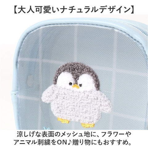 | 商品説明 | 【小物をまとめてバッグの中すっきり】細々したアイテムをIN♪持ち歩きに便利な「メッシュミニポーチ」が新登場。【デイリー使いにぴったりサイズ】コンパクトな、丸みのあるスクエアフォルム。サッと持ち出せるのが嬉しい♪【ラウンド型に大きくオープン】サイドまでガバっと開いて、出し入れスムーズ。ファスナーを閉じれば、こぼれ落ちをガード。【マルチに使える万能アイテム】コスメを入れたり、イヤホンやキャンディなどをIN。底マチ付きで程よい収納力◎【大人可愛いナチュラルデザイン】涼しげな表面のメッシュ地に、フラワーやアニマル刺繍をON♪贈り物にもおすすめ。 |