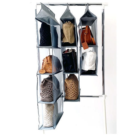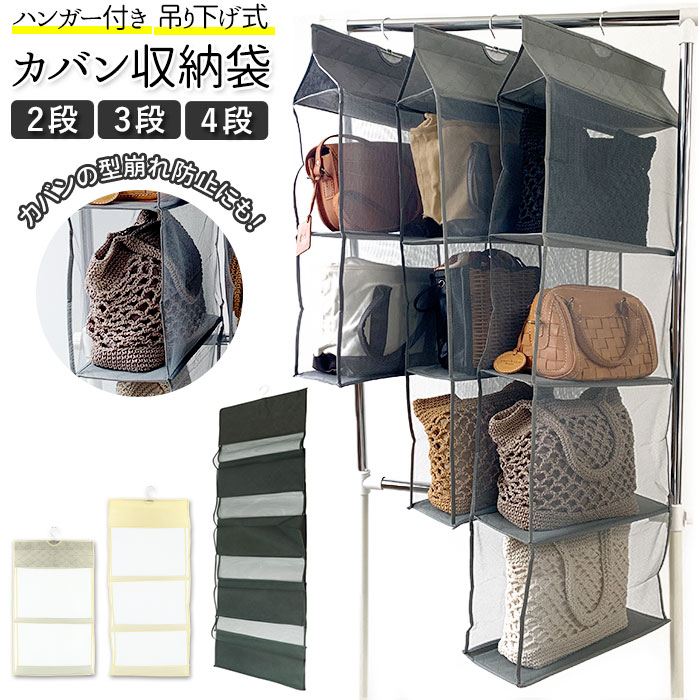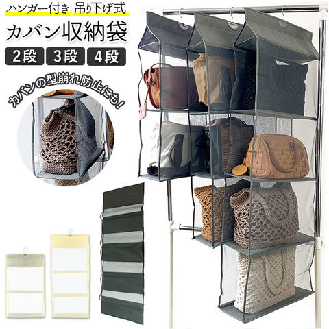| 商品説明 | 整理しづらいカバンをすっきりと収納して、スペースを有効活用!「吊り下げ式・カバン収納袋」が登場。カバン収納部には通気性がよくカビ防止に役立つポリエステルメッシュ素材を使用。使いたいカバンがひと目でわかるので、お出掛け前に手間どらない♪クローゼットやコート掛けにスマートに掛けて使えるハンガー付き。天気がいい日には、ハンガーごと物干しやベランダで外干しに♪立体的なデザインで空間を有効活用しながら、カバンを型崩れから守ってくれるお役立ちグッズ! |