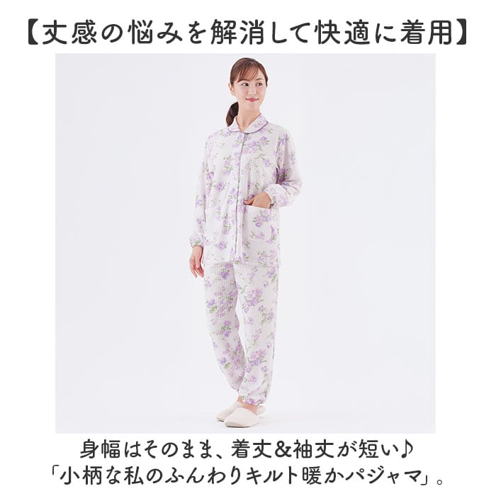 小柄な私のふんわりキルト暖かパジャマ【パープル】【Lサイズ】