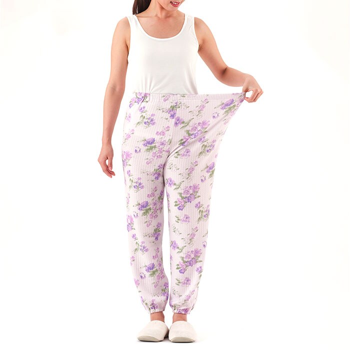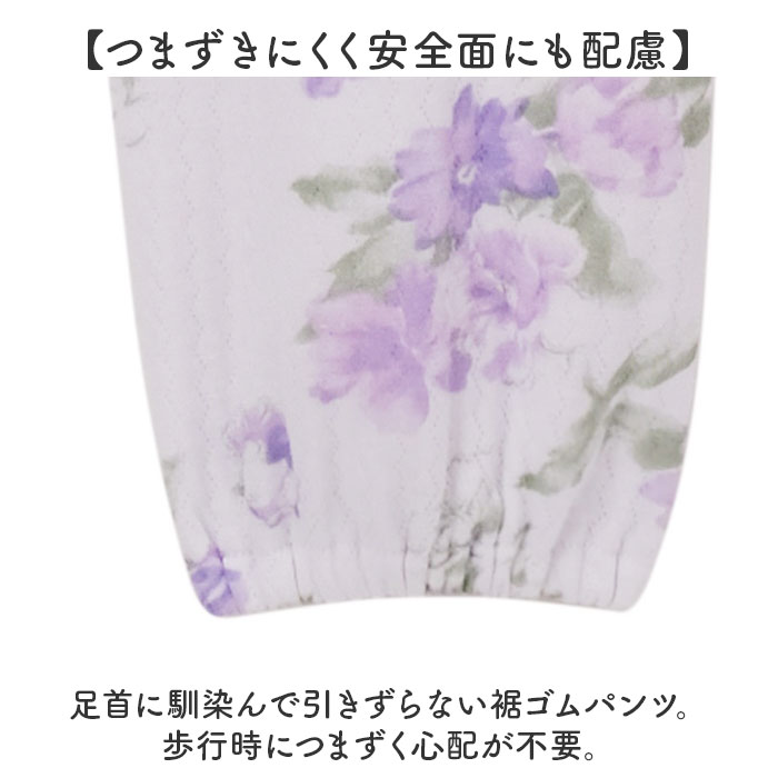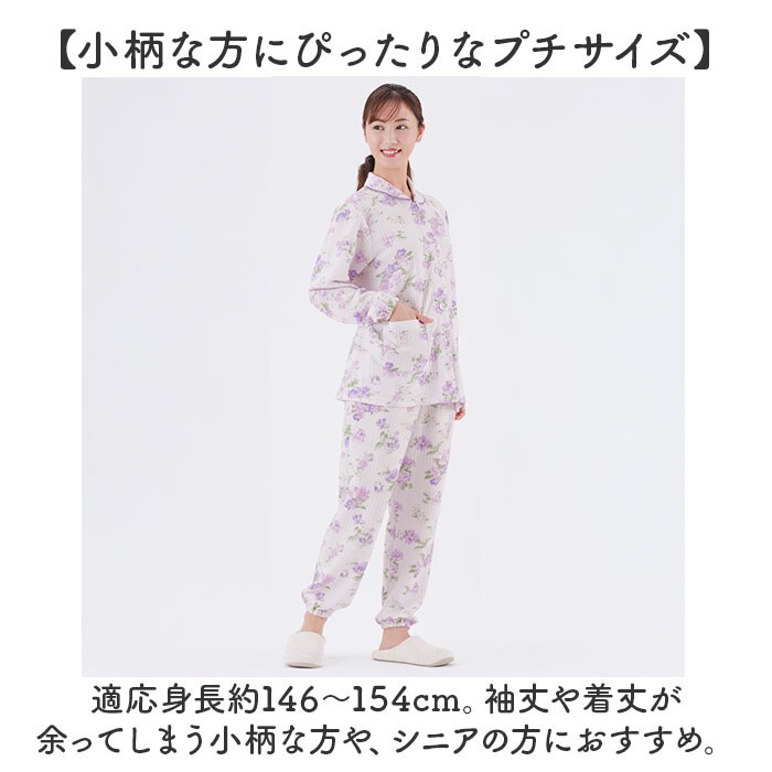 | 商品説明 | 【丈感の悩みを解消して快適に着用】身幅はそのまま、着丈&袖丈が短い♪「小柄な私のふんわりキルト暖かパジャマ」。【小柄な方にぴったりなプチサイズ】適応身長約146~154cm。袖丈や着丈が余ってしまう小柄な方や、シニアの方におすすめ。【ふんわり中綿入りの3重構造キルト】ソフトな肌触りの3重キルト。空気を含んで温もりを逃さず、心地よいあたたかさ♪【冷えやすい肩まわりもあったか】大きめサイズの背当て布付き。寒さが気になる季節も、冷えから守ってくれる◎【フロントボタンでサッと着脱】大きめのボタンで着脱しやすい、前開きタイプ。介護や入院にも最適で、左右にポケット付き。【締め付けがなくストレスフリー】パンツは自分サイズにフィットする、ウエストゴム仕様。色付きのゴム口付きで取り替えも楽々。【つまずきにくく安全面にも配慮】足首に馴染んで引きずらない裾ゴムパンツ。歩行時につまずく心配が不要。【おしゃれな花柄プリントデザイン】水彩風の花柄を全面にプリント。リラックスタイムをおしゃれに過ごせて、気分もアップ♪ |