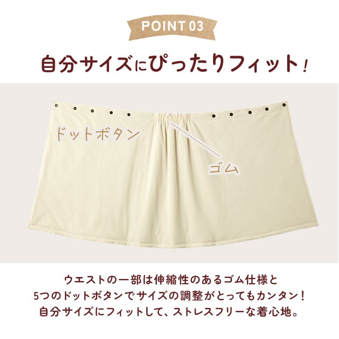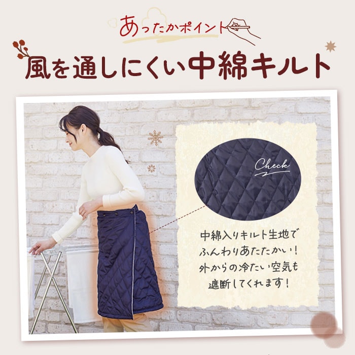 | 商品説明 | 寒い冬の味方☆ぬくぬくあたたかい「中綿キルトリバーシブル巻きスカート」が新登場。【ふんわりあったか♪】中綿を入れたキルト生地を使用。薄手のソフトな質感ながら、冷えやすい腰まわりを温めてくれるアイテム。【うれしいリバーシブル仕様】中綿入りキルトの裏側はフリース生地になっており、表裏どちらも使えるリバーシブルタイプ。お好みに用途に合わせて、使い分けできるのが嬉しい!【いつでもどこでもサッと装着】洋服の上に重ねて巻くだけ!お家ではもちろんオフィスやアウトドアシーン、スポーツ観戦などでも大活躍◎【自分サイズにフィット】ウエストの一部は伸縮性のあるゴム仕様&5つのドットボタンが配置されており、サイズの調整がラクラク。心地よいフィット感で、ストレスフリー。【持ち運びにも便利】折りたためばコンパクトサイズになるので、持ち運びもスマート。【お手入れ簡単】汚れが気になったら、ネットに入れて洗濯機洗いOK。いつも清潔をキープ◎【選べるカラー】秋冬コーデに馴染みやすく、どなたでも使いやすい落ち着きのあるカラーをラインナップ。 |
