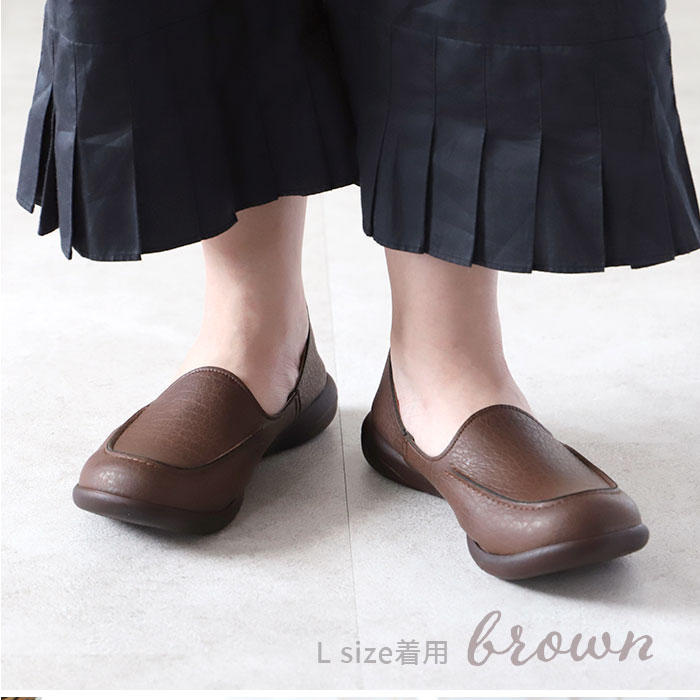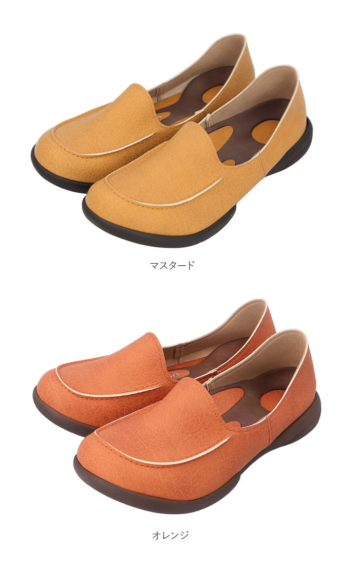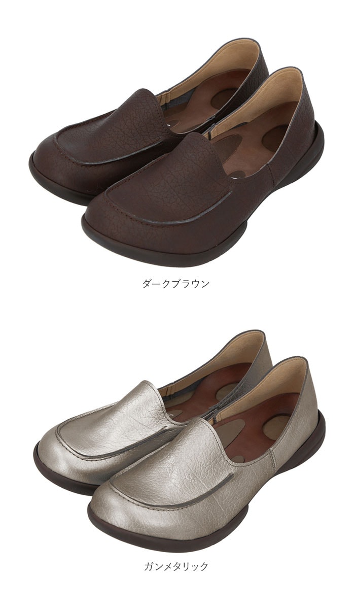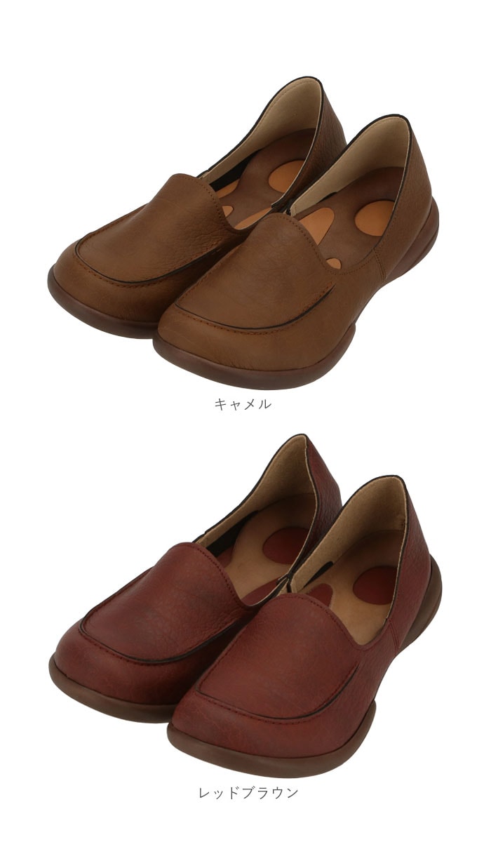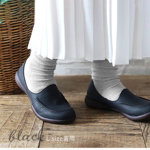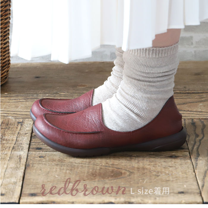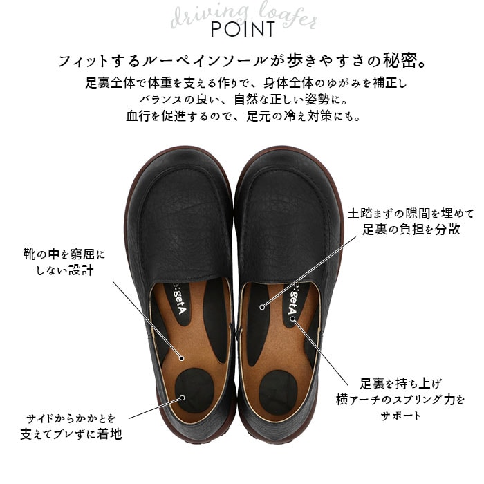 | 商品説明 | 「下駄(Geta) をもう一度(Re:)」というコンセプトの元、2005年に大阪生野区で生まれた、Re:getA(リゲッタ)。日本古来の機能的な履物である下駄を見直し、硬いアスファルトの上を歩く現代人の足にフィットするよう、人間工学に基づいたアイディアで再設計されて誕生したコンフォートシューズブランド。軽くて柔らかな質感のフェイクレザー素材で、足元快適でスタイリッシュ!スリッポンみたいにサッと履けるRe:getA(リゲッタ)ドライビングローファー。Re:getA(リゲッタ)の深みのあるブラウンのアウトソールが、理想的な歩き方に導いてくれる♪つま先が反りあがったローリングカットで、つま先に少し力を入れるだけでスイスイ進めて、かかとのラウンディングカットでかかとからしなやかに着地できる。足の裏にしっかりとフィットするルーペインソールが歩きやすさの秘密!足裏を持ち上げ、横アーチのスプリング力をサポートする「中甲骨サポート」形状と、土踏まずの隙間を埋め、足裏にかかる負担を分散する「アーチサポート」形状、さらに、サイドからかかとを支えてブレずに着地できる「ヒールカップ形状」で足圧を分散。足裏への負担を軽減!本体のフェイクレザー素材には、水を弾いて、通気性のある合皮素材airphy(R)エアフィを採用。靴の中のムレを抑えて長時間履いても快適。かかと部分や履き口には、柔らかなフェルト素材で、肌触りがソフトで疲れにくい。ソール裏側にはしっかりと溝が刻まれているので、雨の日でも滑りにくい。ブラウンのソールと落ち着いた色調のフェイクレザーが調和したシンプルなデザインで、スカートでもパンツスタイルでも、自在にコーディネートできる♪片足(Lサイズ)で約200g!履いていることを忘れてしまいそうな軽さ。フラットなソールで疲れにくく、いつでも気軽に履けるのが嬉しい♪ |