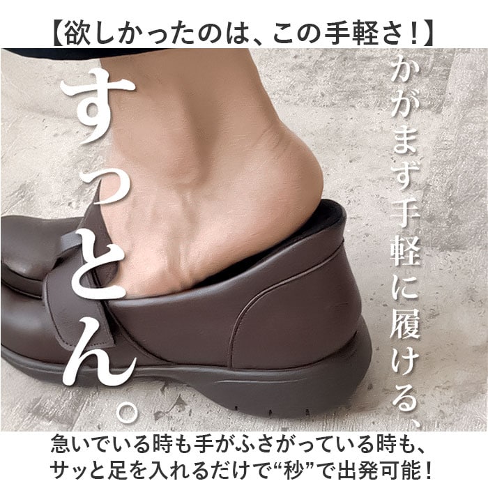 | 商品説明 | 【かがまず、手軽に履ける】ストレスフリー履ける「SuttOn」がメンズサイズで新発売。(レースアップタイプ)【欲しかったのは、この手軽さ!】急いでいる時も手がふさがっている時も、サッと足を入れるだけで“秒”で出発可能!【メッシュ素材で足入れスムーズ】かかと部分はメッシュ素材で足入れがスムーズ。丈夫な造りで、キレイな形を保てたまま履ける【ラウンドトゥでつま先ゆったり】丸いつま先形状がちょうどいいゆったり感。締め付け感がなく、足がくつろぐ履き心地。【ストレスフリーに履ける】シュータン部分に柔らかく伸縮するサイドゴアを内蔵。つま先がスッと入ってストレスフリー。【インソールも歩きやすい工夫を】凹凸インソールが足裏に絶妙にフィット!ユニークな形状が足裏全体を支え歩行時の負担を軽減【内アーチサポート】土踏まずのすき間を埋め、足裏にかかる負担を分散。【中足骨サポート】足裏を持ち上げ、横アーチのスプリング力をサポート。【ヒールカップ】サイドから“かかと”を支え、ブレずに着地できる。【嬉しい抗菌・消臭】インソールの表面は抗菌・消臭素材で出来ており、いつでも清潔に使える◎【雨の日のしっかりグリップ】EVA素材のアウトソールには凹凸を刻み込み、雨の日もしっかり地面をグリップ。【シニアの方や子育てパパにも】屈んで靴を履くことが難しいシニアの方、お子様を抱っこしてのお出掛けにぴったり【どんなシーンにも合う合皮】シボ感のある合皮素材を使用し、普段のお出かけはもちろん、オフィス用にもオススメ♪ |