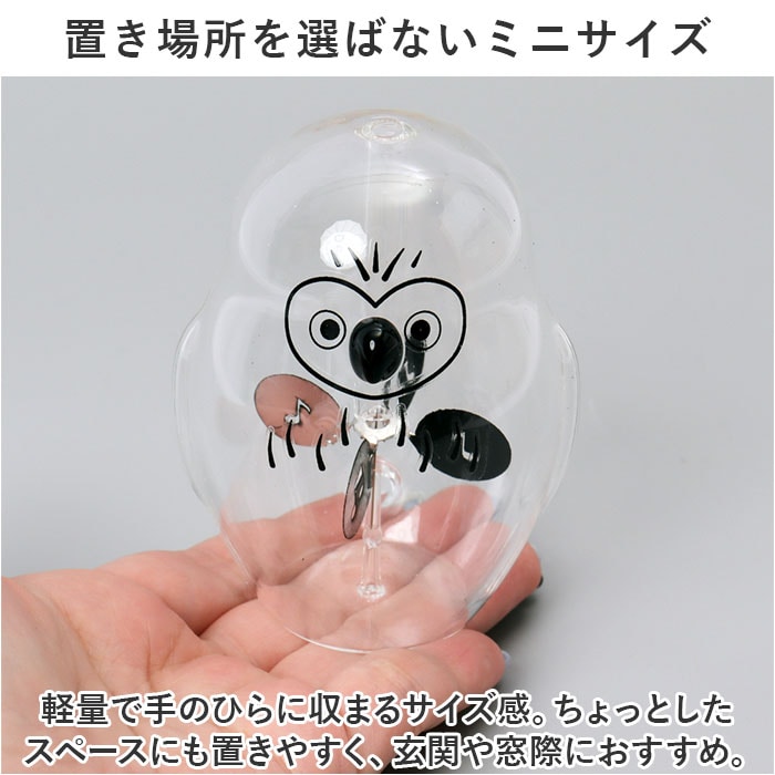 | 商品説明 | 愛らしいシルエットのふくろうに、心もほっこり。見た目と動きの両方で楽しめるオブジェ「ラジオメーター」が新登場。【光熱の力を利用して、くるくる回転】太陽光や白熱灯を浴びると、熱を吸収した4枚の羽が回転。そのスピードは当たる光の強さによって変化し、見ているだけで楽しいインテリア☆【回転する原理とは一体…?】ガラスの中の羽根の片面は黒で塗られており、光にあてることで黒い羽根の面は光を吸収し温度が上昇。表面付近の気体の分子活動が活発になり、羽根の面に分子衝突による圧力が他面と差を生じて、羽根は塗られていない面の方に回転。【癒やしのふくろうモチーフ】そのまま置いておくだけでも可愛い、丸みのあるフォルム。ふくろうの優しい眼差しに、思わずキュン♪【置き場所を選ばないミニサイズ】軽量で手のひらに収まるサイズ感。ちょっとしたスペースにも置きやすく、玄関や窓際におすすめ。【お世話になった方への贈り物に】いつも頑張っている方に、癒やしをお届け☆ぼーっと頭を休ませるリラックスタイムのお供に。 |