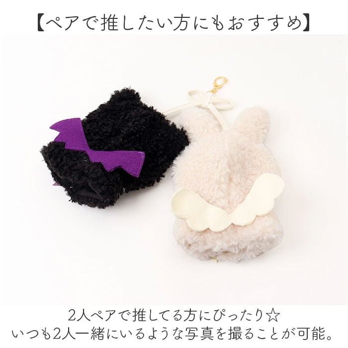 | 商品説明 | 【推しぬいを可愛くバージョンアップ】お手持ちのぬいぐるみに着せるだけで、とびきりキュート!天使&悪魔の「ぬいポンチョ」。【天使と悪魔のにこいちポンチョ】・2つの推しぬいが、天使と悪魔に変身♪天使はうさぎ、悪魔にはネコ耳付き!(※)15cmぬい推奨サイズです。【面ファスナー式でお着替えスムーズ】フロントの面ファスナーで簡単着脱。面倒な手間なく、ぬい活初心者さんにも!【ぬい撮りしたり、楽しみ方自在】ぬいぐるみをメインに、写真を撮るも良し。推し活の現場に連れていったり、お家時間も一緒に。【ペアで推したい方にもおすすめ】・2人ペアで推してる方にぴったり☆いつも2人一緒にいるような写真を撮ることが可能。【バッグに取り付けて仲良くお出掛け】・2つセットでバッグの金具などに装着できる、ナスカン付き。いつでも推しをアピール♪【推し活を楽しむAppel Toi】シンプルで機能的な推し活アイテムを提案。ヲタ活を楽しむ女子の味方☆ |