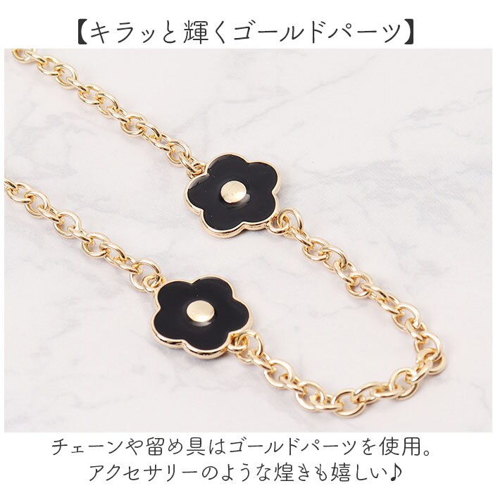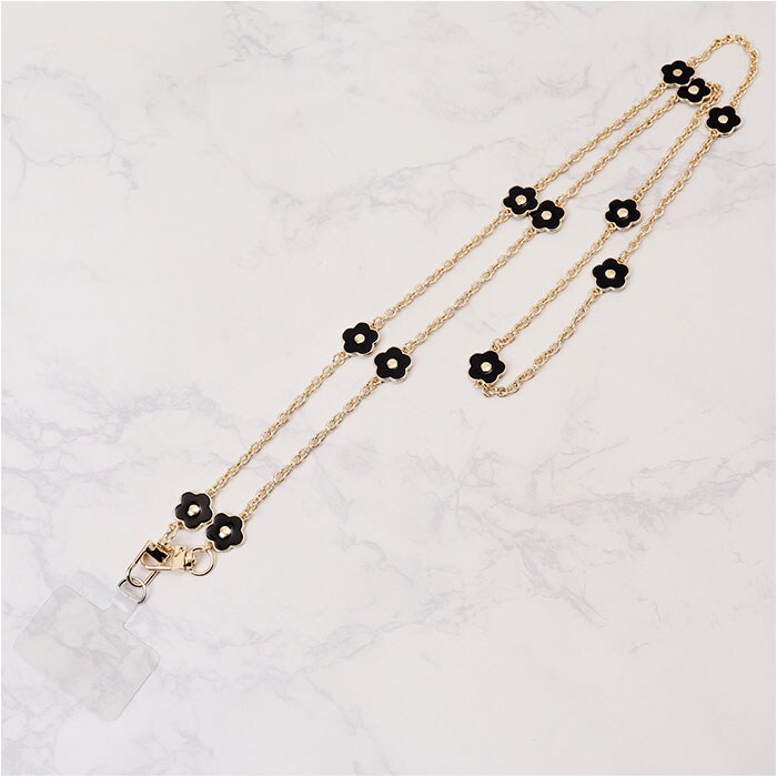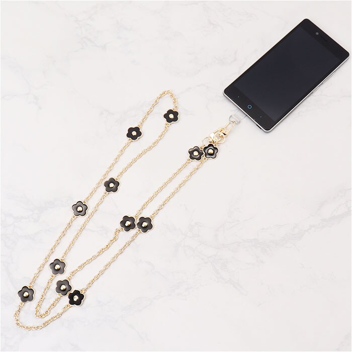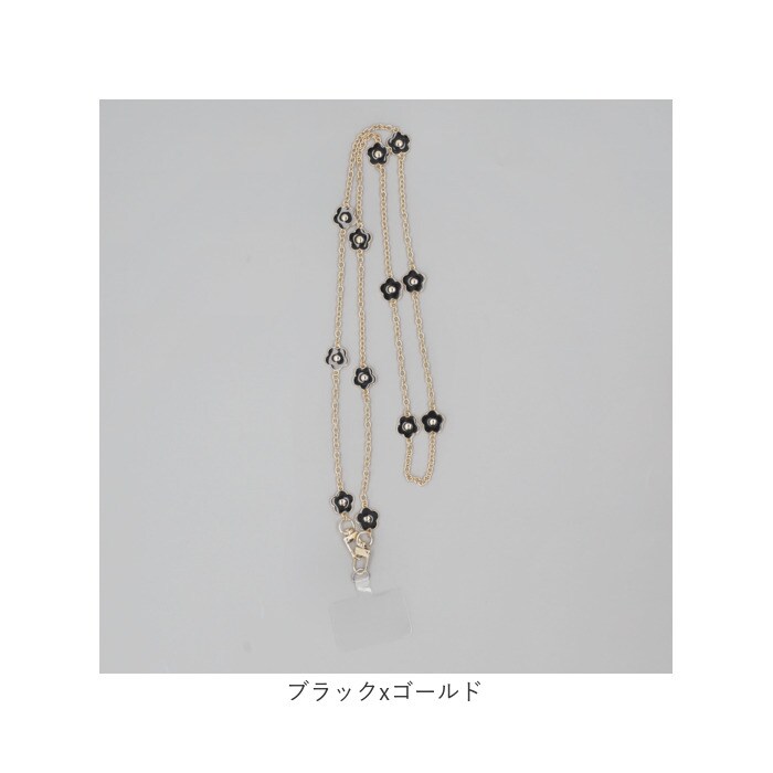 ロングフラワーモチーフストラップ【ブラックxゴールド】