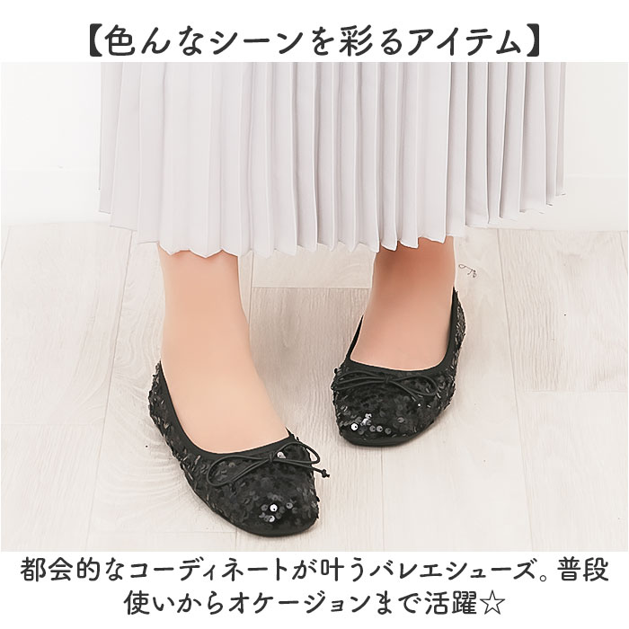 スパンコールバレエシューズ【ブラック】【Lサイズ】