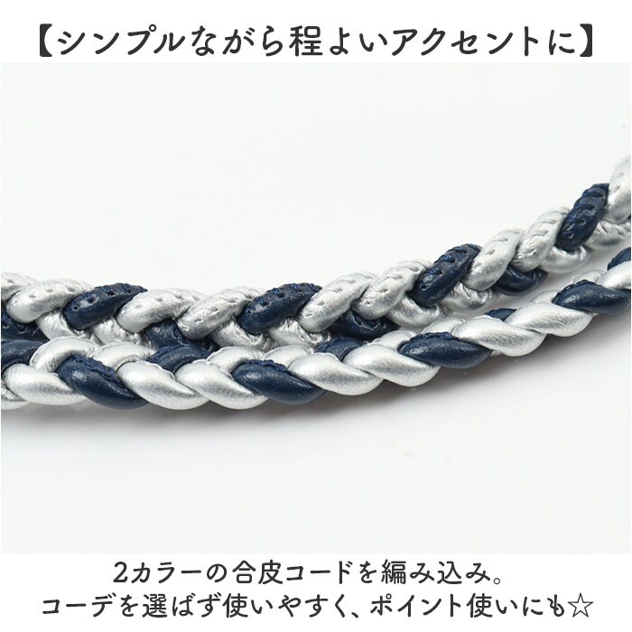 三つ編み合皮コードストラップ【シルバー】
