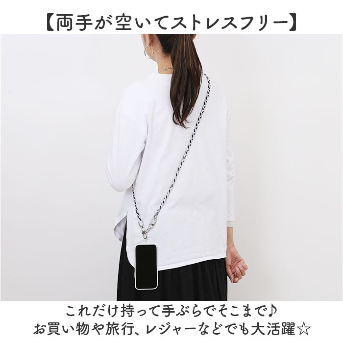 | 商品説明 | 【ケースに挟むだけのストラップ】お手持ちのスマホケースに簡単セット!「三つ編み合皮コードストラップ」。【スマホが迷子にならずいつも一緒】スマホを斜め掛けして持ち歩き♪サッと手に取りやすく、ポケットのない洋服でも大丈夫。【シンプルながら程よいアクセントに】・2カラーの合皮コードを編み込み。コーデを選ばず使いやすく、ポイント使いにも☆【挟んでストラップをサクッと装着】付属の透明ホルダーをスマホとケースの間に挟むだけ。ストラップもナスカン式で着脱簡単。(※1)ケーブル穴の幅が1.3cm以上のケースに使用可能、ケースの形状によっては使用できない場合もあります。【スマホの機種を問わず使える】お手持ちのスマホケースに取り付けるタイプなので、スマホを買い替えても使用可能。(※2)ストラップホール付きのケースをお持ちの場合、透明ホルダーを外して直接取り付けも可能です。【両手が空いてストレスフリー】これだけ持って手ぶらでそこまで♪お買い物や旅行、レジャーなどでも大活躍☆ |