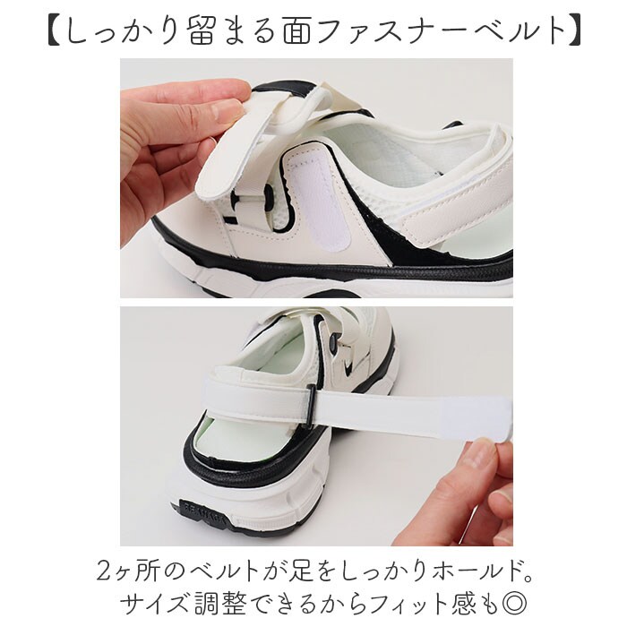 | 商品説明 | 【スニーカー感覚で履けるサンダル】動きやすさと快適さを兼ね備えた、メッシュテープサンダルが登場。【通気性バツグンのメッシュ素材】ムレにくいから暑い日も快適。アクティブに動いても足元さらっと気持ちいい♪【しっかり留まる面ファスナーベルト】2ヶ所のベルトが足をしっかりホールド。サイズ調整できるからフィット感も◎【クッション入りで疲れにくい】ふわっとやさしいインソールが衝撃を吸収。たくさん歩いても足ラクちん!【インソールは取り外して洗える】汗をかいても大丈夫!インソールは外して手洗いOKだからお手入れも簡単。【厚めのソールで安定感あり】ボリュームソールがコーデのアクセントに。見た目も歩きやすさもばっちり!【街でもアウトドアでも頼れる一足】公園やキャンプ、買い物まで幅広く活躍。ベーシックカラーでコーデにもなじむ万能デザイン。 |