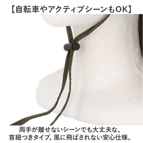 | 商品説明 | 【首元まで広く日よけカバー!】軽くて涼しいかぶり心地の「フィッシングハット」が登場。【日よけ対策にぴったりのハット】首元まで覆う後ろたれと、大きなツバがポイント。日傘みたいに、広範囲をカバー。【通気性にこだわった仕様】内側はメッシュ生地を使い、4箇所の通気口をプラス。ムレが気になる季節も快適に。【ソフトワイヤー入りで視界がクリア】ツバのカタチを自由自在に調節できる、ワイヤー入り仕様。安全性と快適さを両立。【自転車やアクティブシーンもOK】両手が離せないシーンでも大丈夫な、首紐つきタイプ。風に飛ばされない安心仕様。【持ち運びもできちゃう】型崩れがしにくいので、折りたたんでバッグに入れることも◎お出かけのお供に。 |