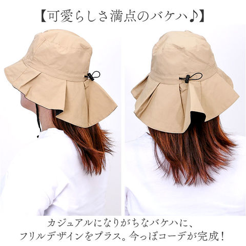 | 商品説明 | 【うしろのフリルでこなれ感UP☆】おしゃれにUVケアができる!「UV バックフリル バケットハット」が登場。【可愛らしさ満点のバケハ♪】カジュアルになりがちなバケハに、フリルデザインをプラス。今っぽコーデが完成!【夏にぴったりの肌触り】ライトなかぶり心地と、撥水加工を施した生地で、サラサラの肌触りが続く!【広めにUVケアしてくれる◎】ツバとバックフリルで、お顔と首元を広くカバー。気になる日差しをブロック。【風対策もできる首紐つき】お好みで取り外し可能の、首紐を搭載。自転車やアクティブシーンでも大活躍。【持ち運びもできちゃう】型崩れがしにくいので、ぺたんこに折りたたんでバッグに入れることも◎お出かけのお供に。【髪型に合わせてサイズを調節】後ろには、アジャスター紐を搭載。髪型やフィット感に合わせて調節OK。【キレイめもカジュアルもマッチ】女性らしいふんわりファッションも、カジュアルファッションも合うデザイン。 |