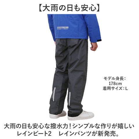 | 商品説明 | 【大雨の日も安心】大雨の日も安心な撥水力!シンプルな作りが嬉しいレインビート2 レインパンツが新発売。【ベーシックなレインパンツ】装飾がないシンプルな作りと無地のカラーでどんなシーンでも使いやすいベーシックな見た目【確かな撥水力】耐水圧10000mmと耐水性抜群!小雨はもちろん、雨が強い日でも使えるのが嬉しい。【着脱楽ちんなズボン】ズボンのウエストは総ゴム仕様で着脱楽ちん♪紐で自分サイズに調節も可能◎【リフレクターで視認性UP】コートの背面やズボンの裾後には反射材がついており、ライトで反射し周りへお知らせ【クロスナップ搭載】ズボン裾にスナップボタンをX状に配置することで、シーンに合わせ2通りの裾調整が可能 |